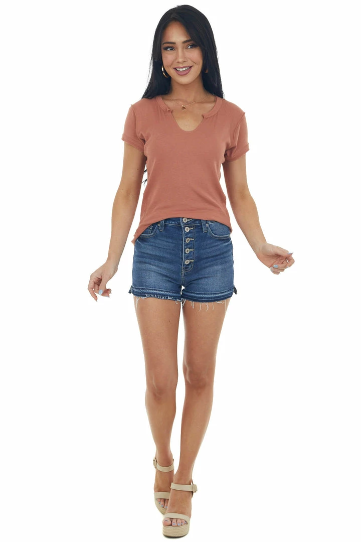 - Sandstone Raw Edge Notch Neck Light Knit Top