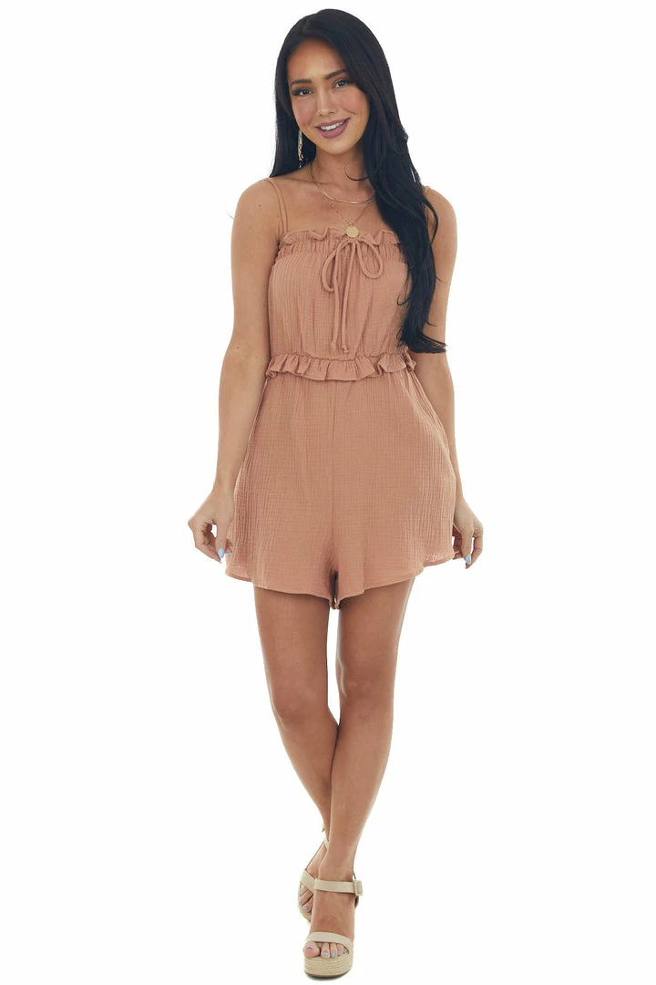- Sandstone Sleeveless Gauze Woven Frill Romper