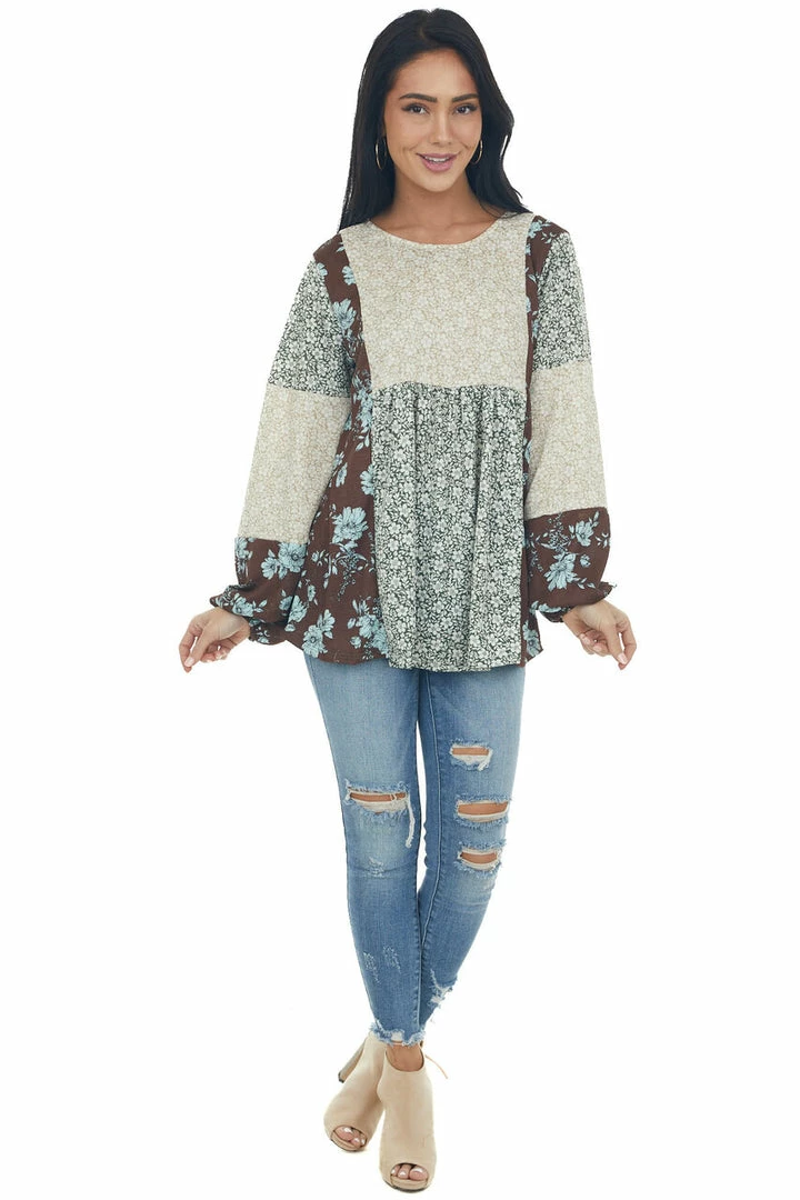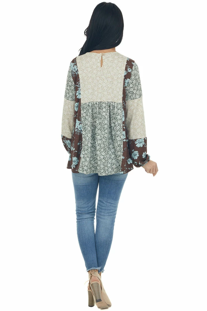 - Taupe and Olive ditsy floral colorblock stretchy knit self