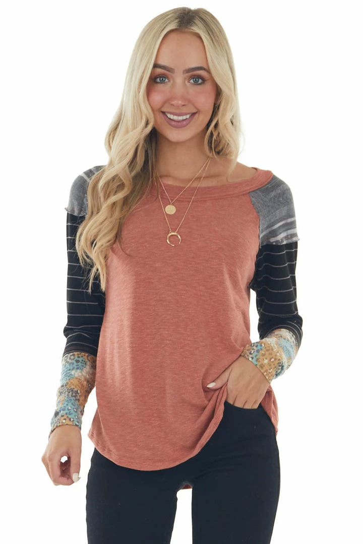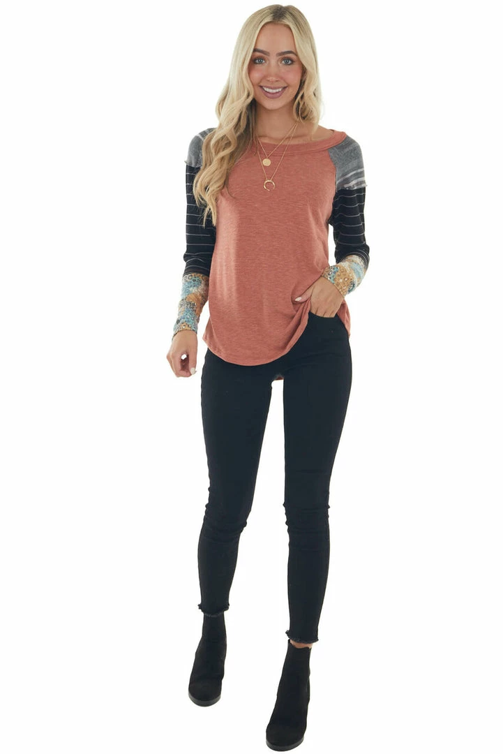 - Faded Rust Colorblock Long Raglan Sleeve TopNo lining