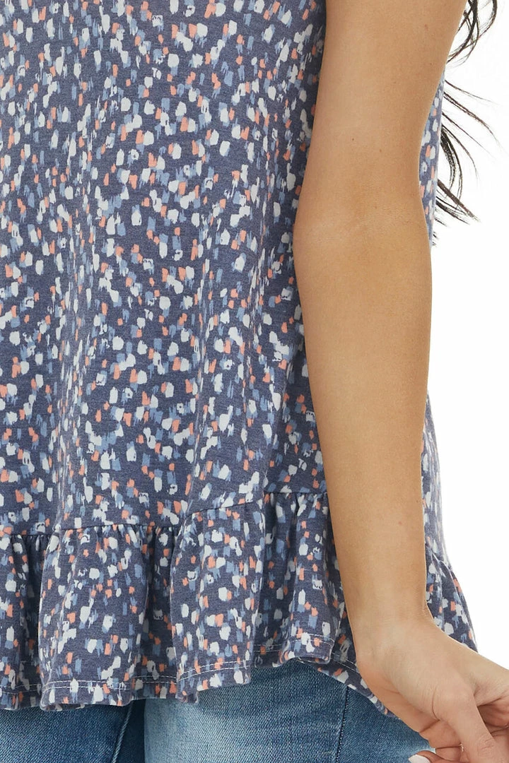 - Vintage Navy Printed Sleeveless Knit Top with Ruffle Hemline