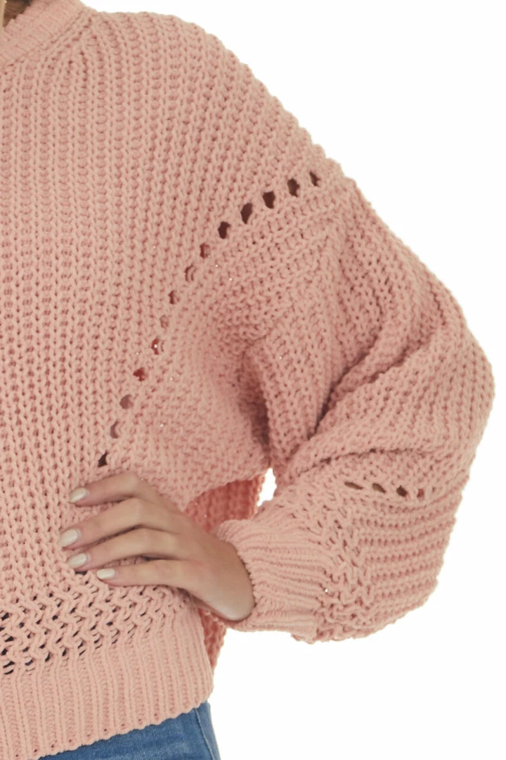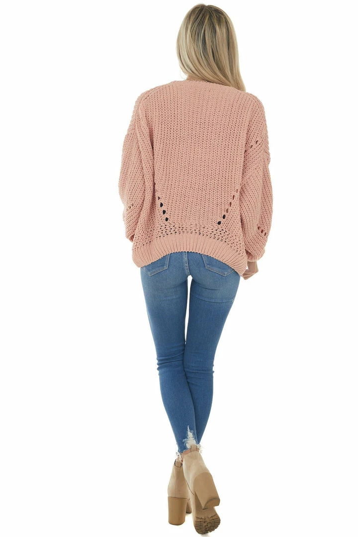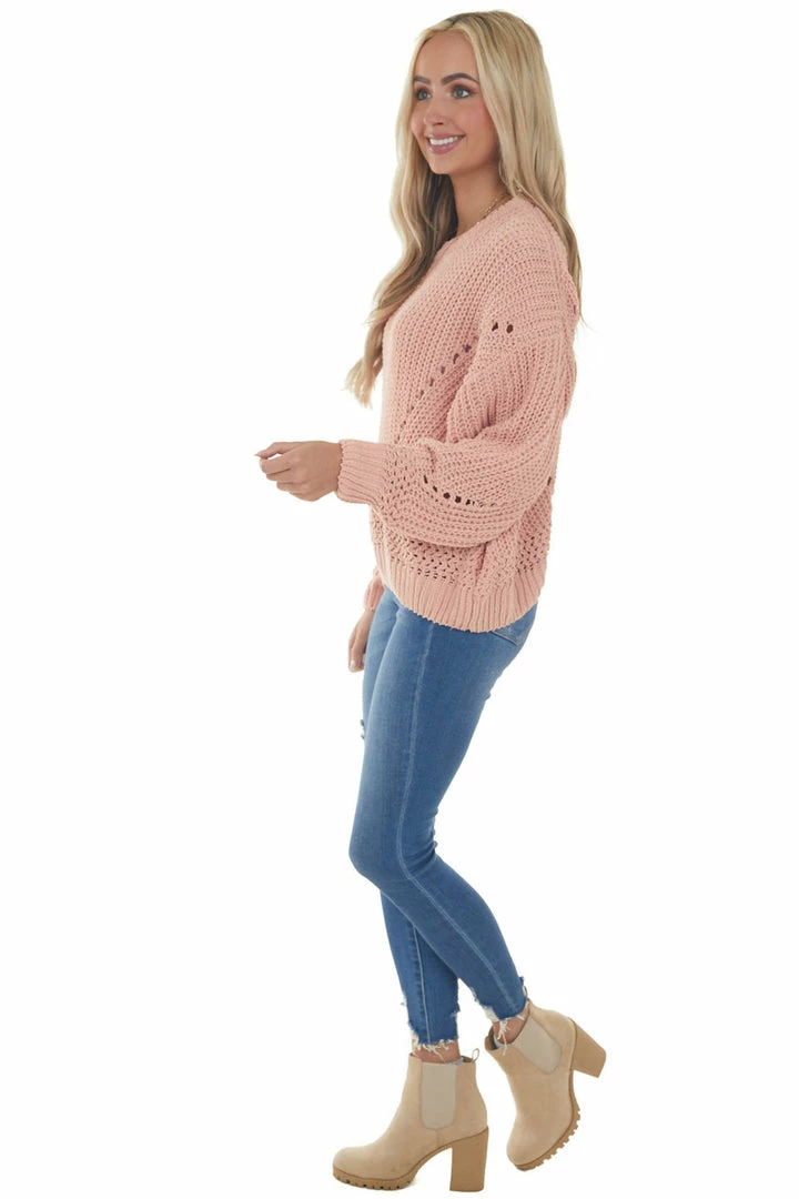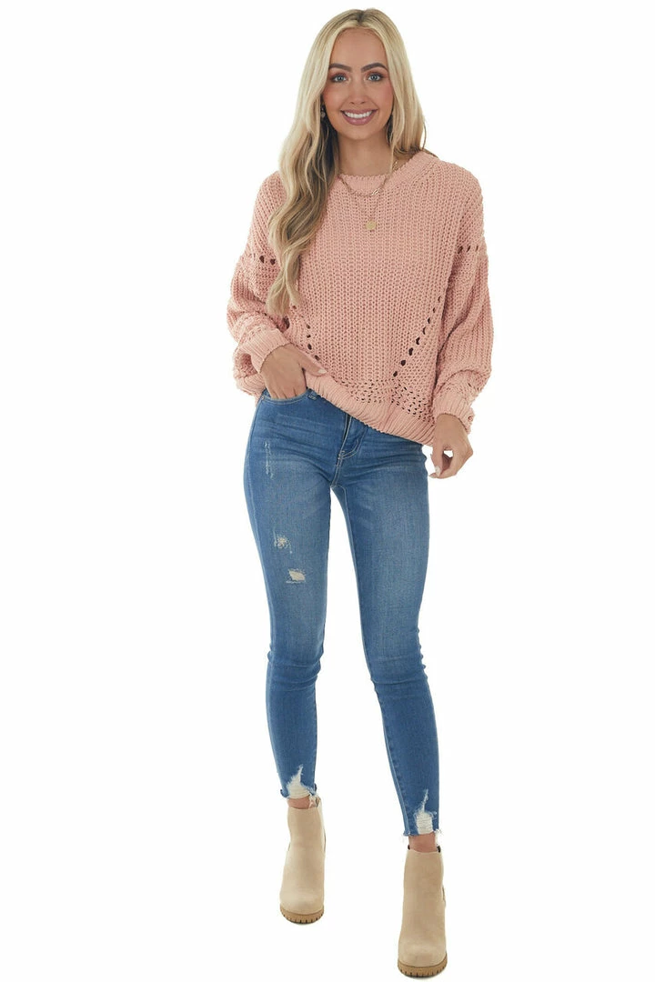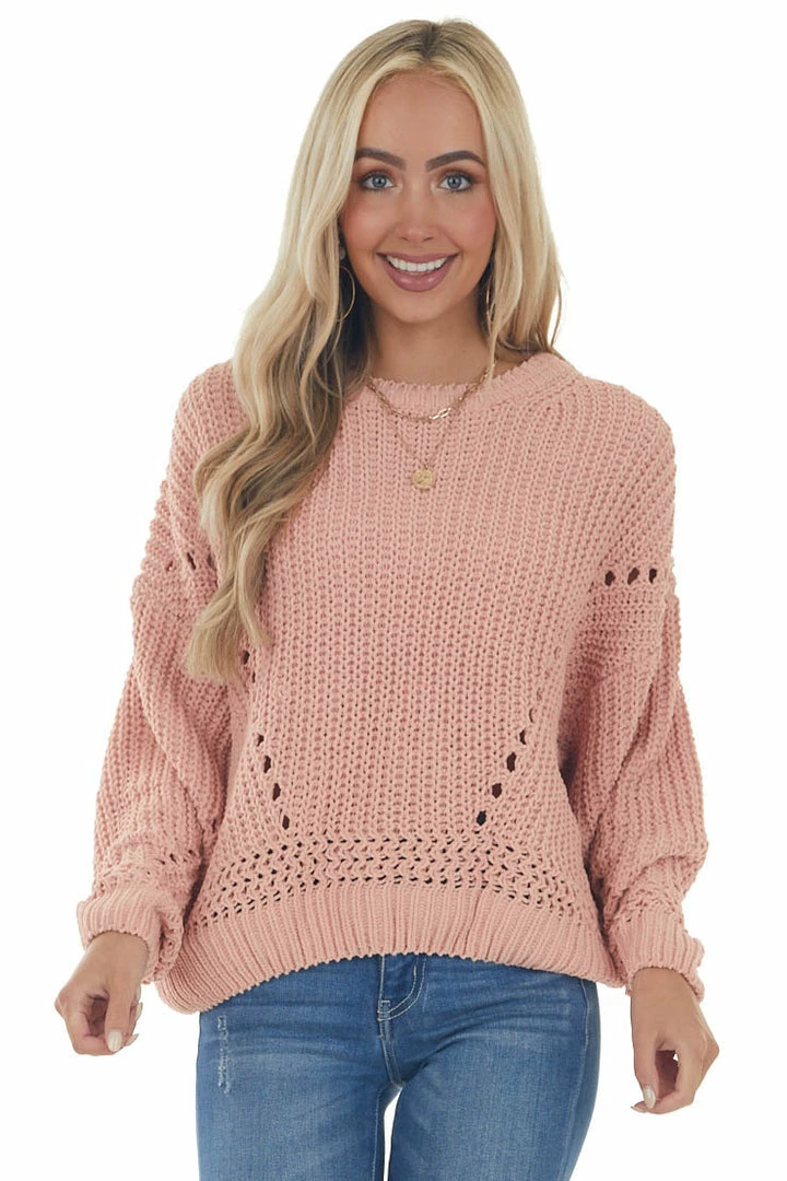 - Peach Chenille Bubble Sleeve Cut Out Sweater