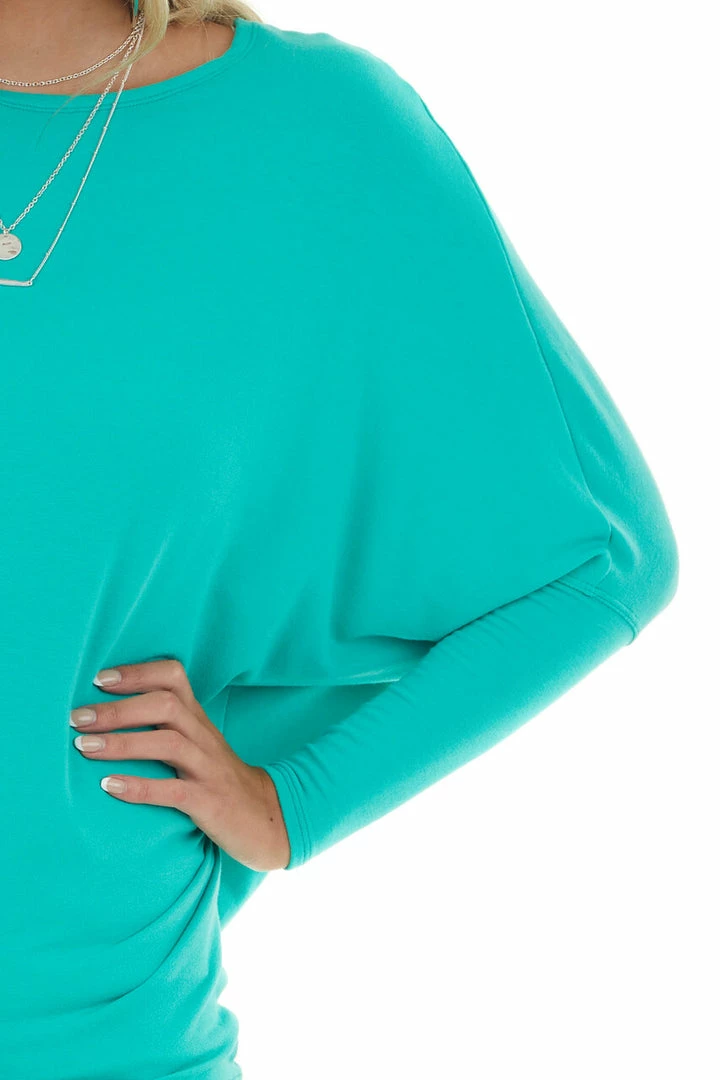 - Aquamarine Round Neck Top with Long Dolman Sleeves