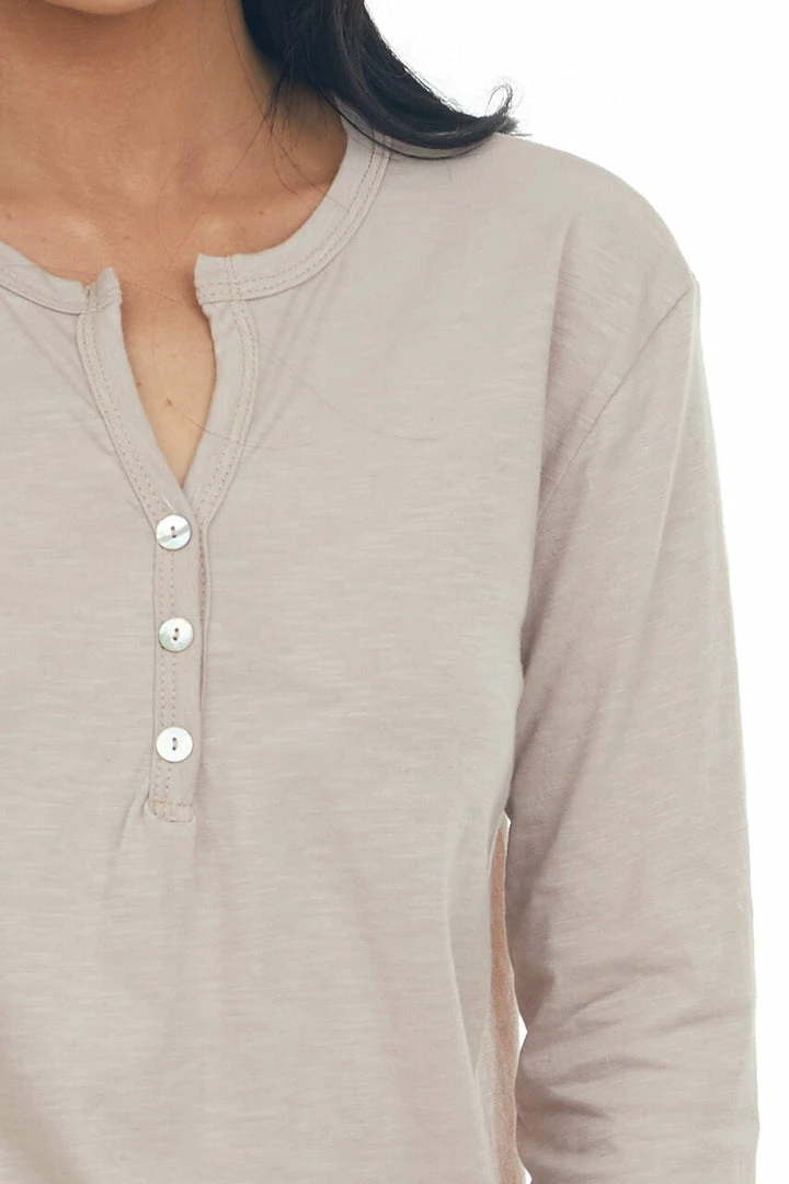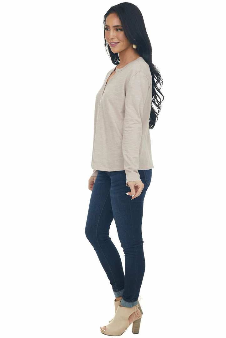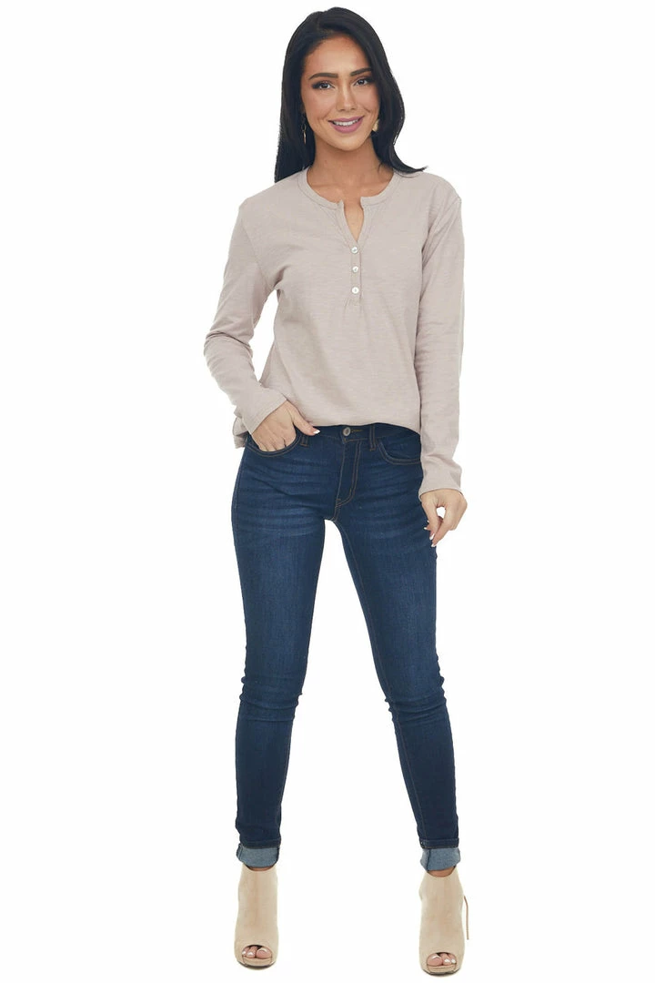 - Tea Rose Long Sleeve Notch Neck Henley Top