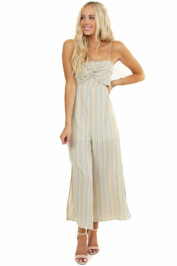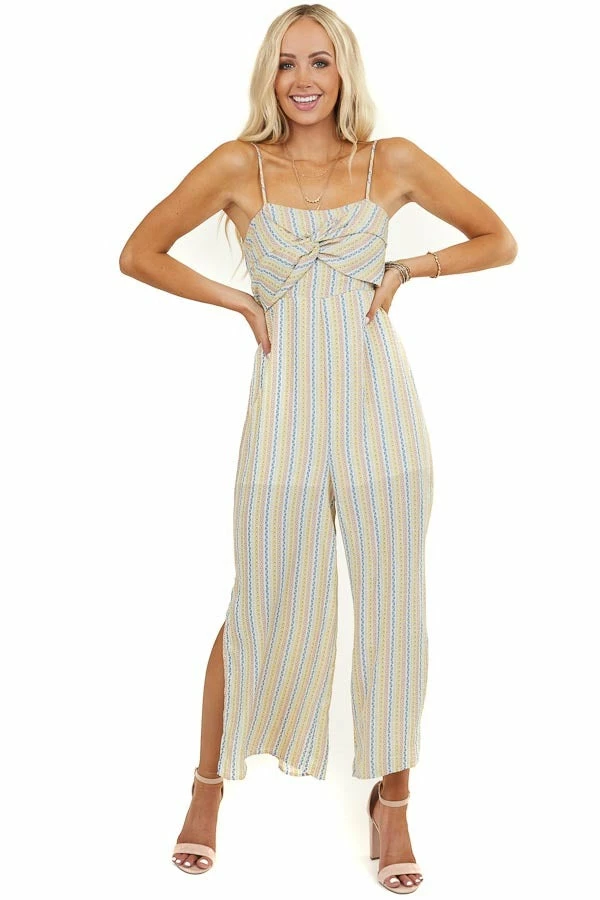 - Multicolor Patterned Jumpsuit with Front Twist Detail