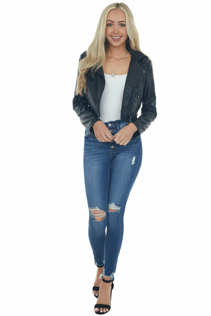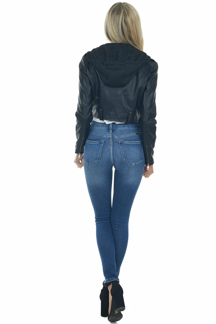 - Black Faux Leather Hooded Cropped Moto Jacket
