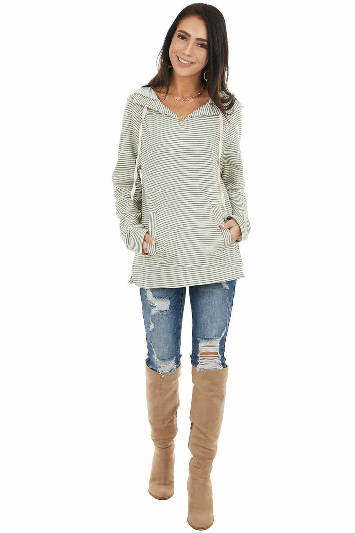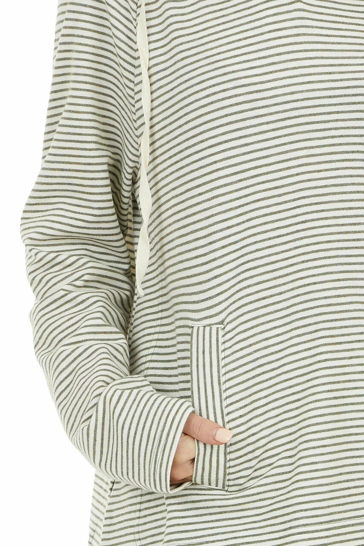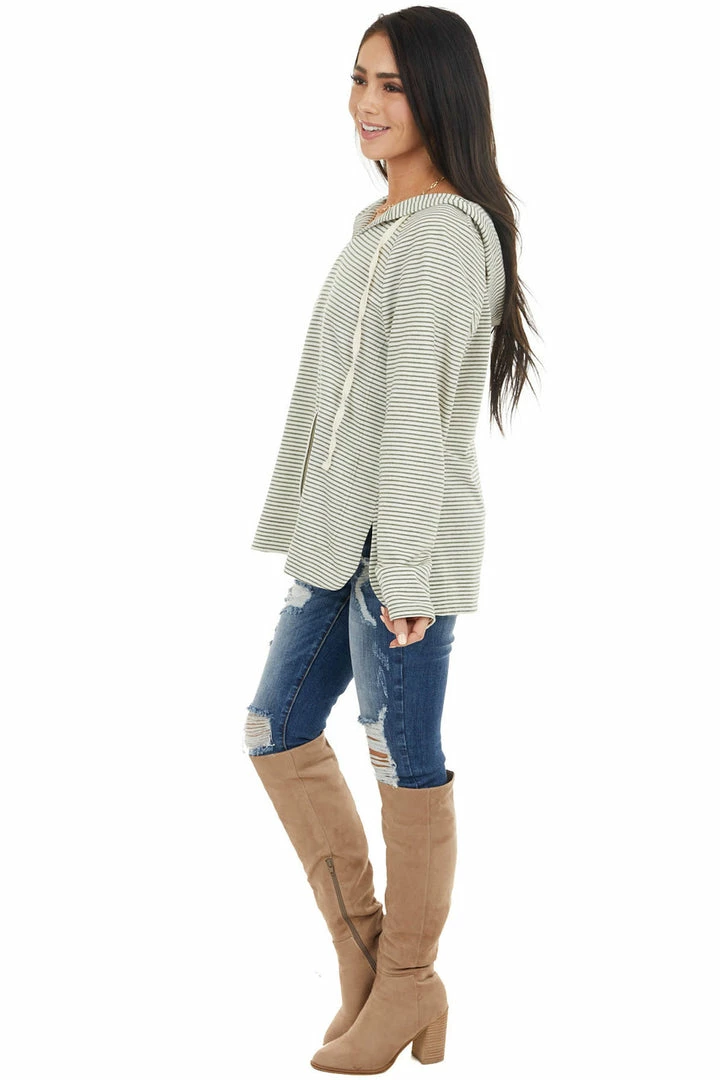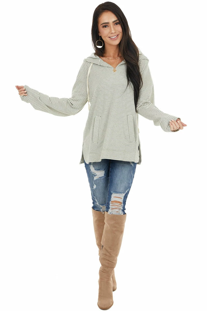 - Sage and Ivory Striped Long Sleeve Lightweight Hoodie