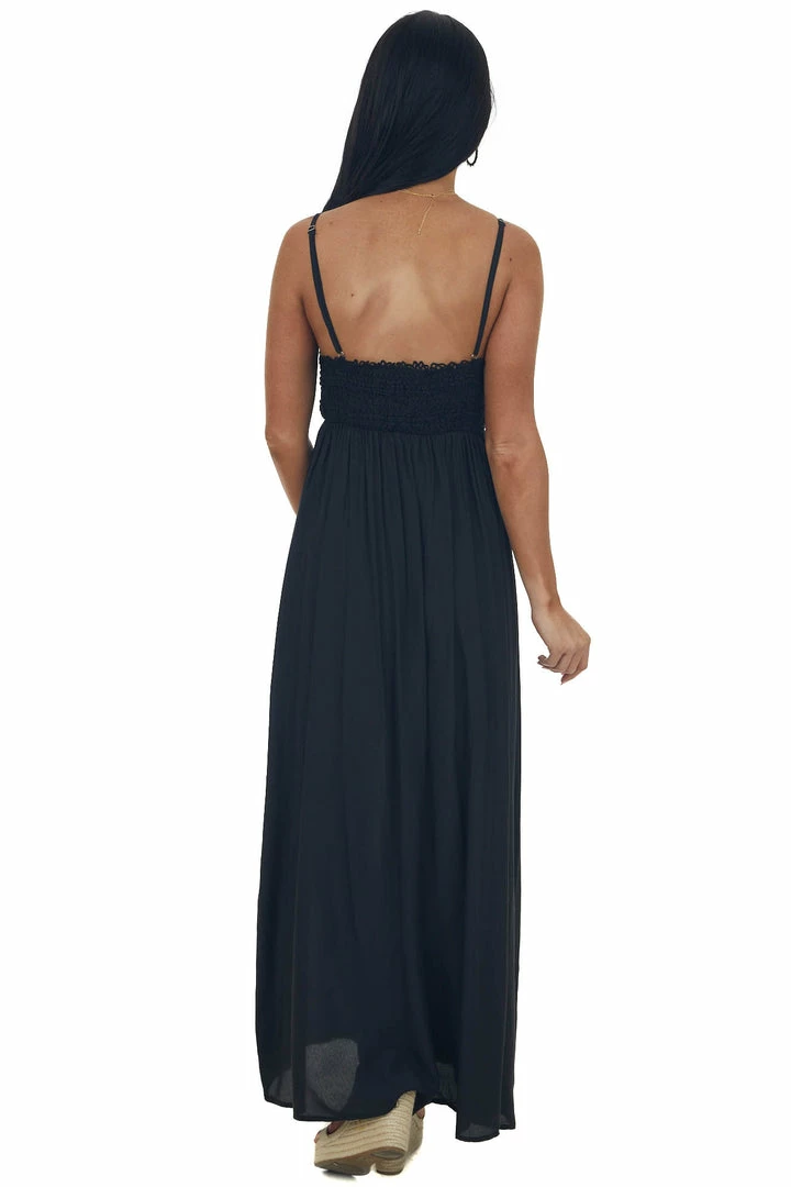 - Black Crochet Bodice V Neck Woven Maxi Dress