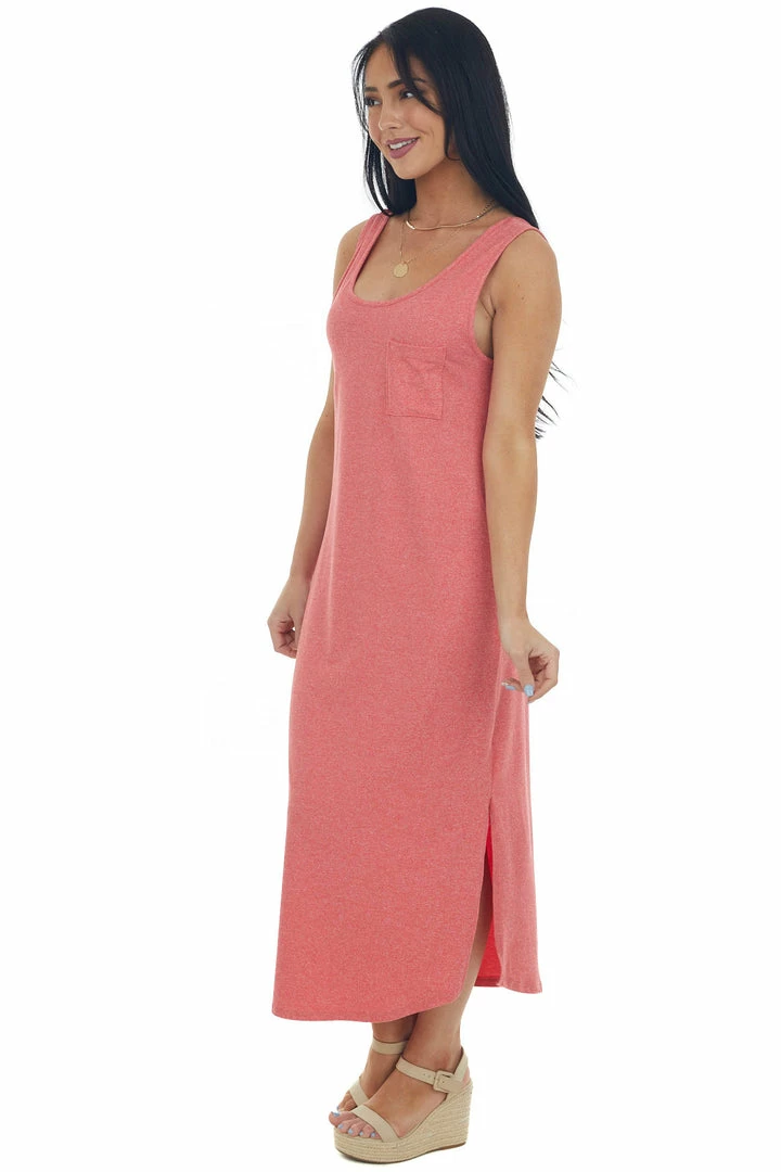 - Crimson Melange Soft Knit Chest Pocket Dress
