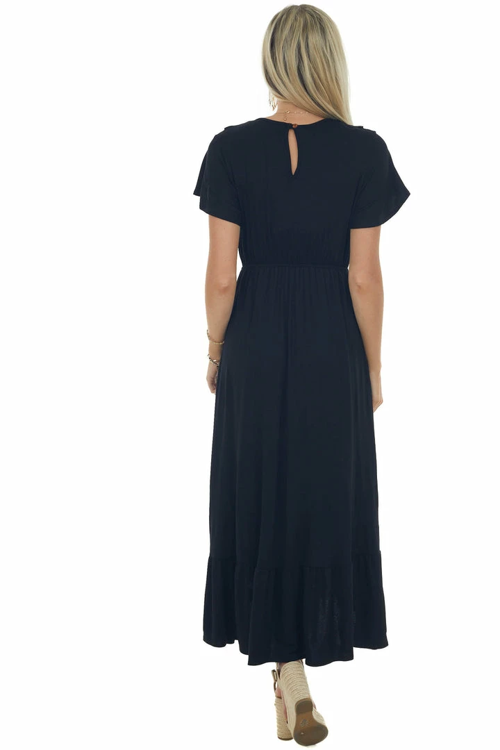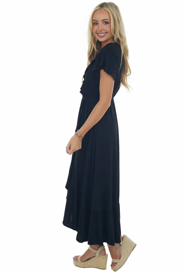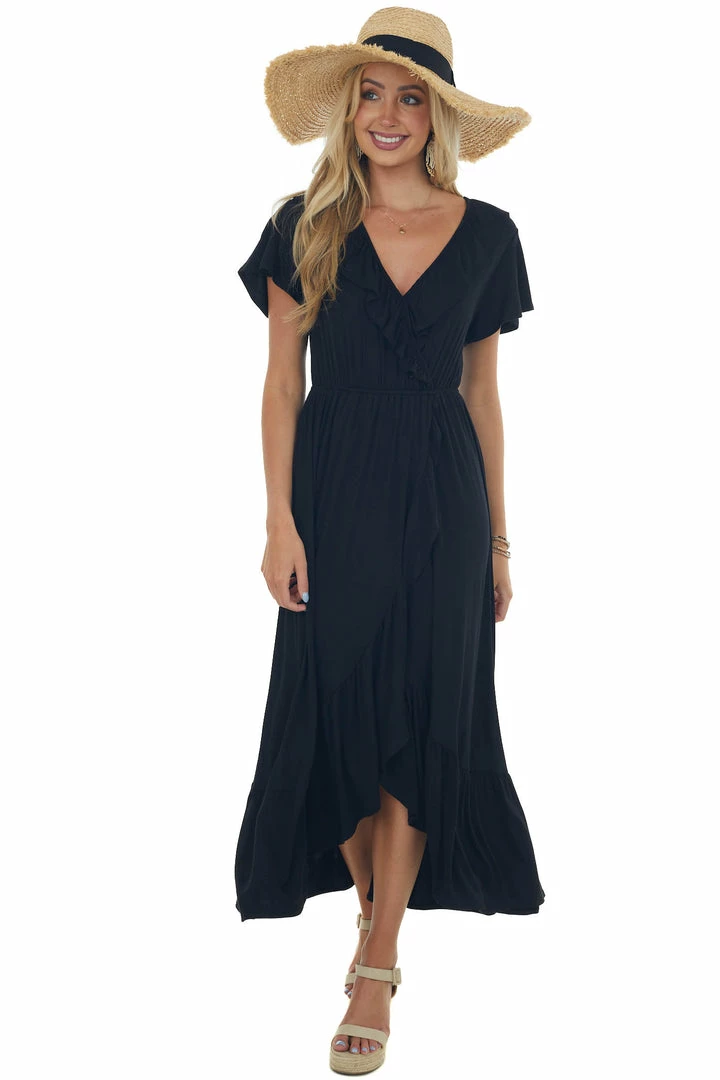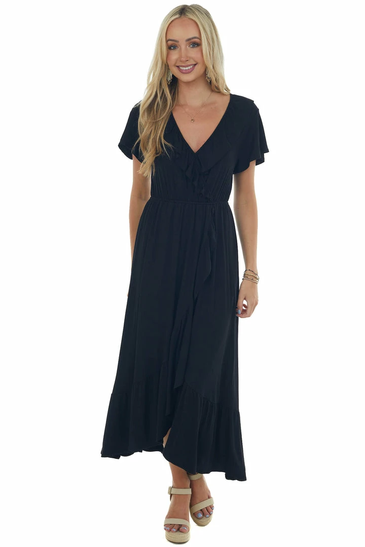 - Black Ruffle V Neck Overlay Maxi Dress