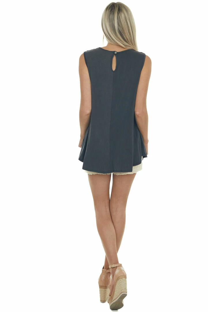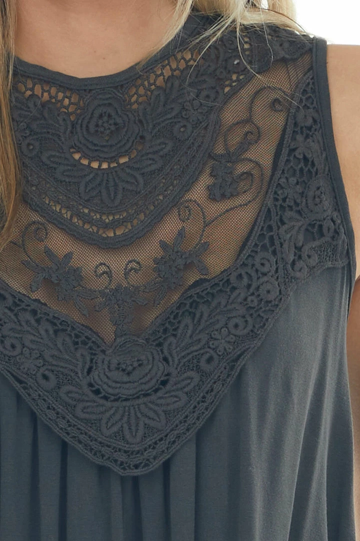 - Faded Black Flowy Sleeveless Top with Sheer Crochet Details