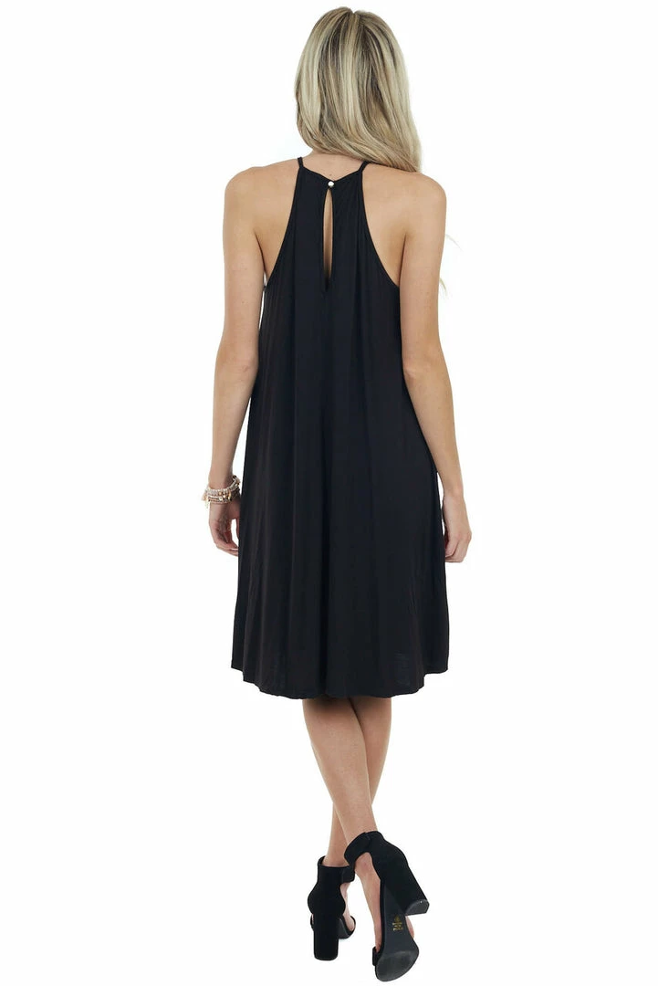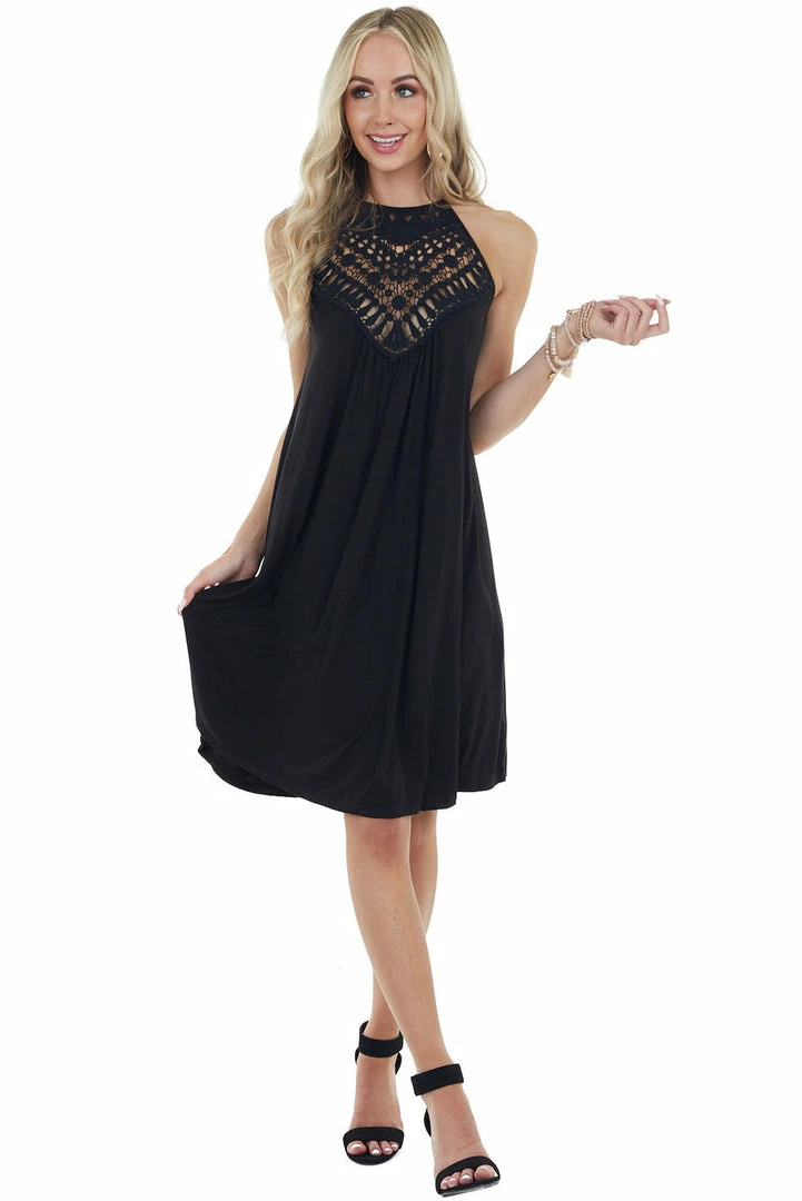 - Onyx Black Short Dress with Lace Front and Keyhole Back