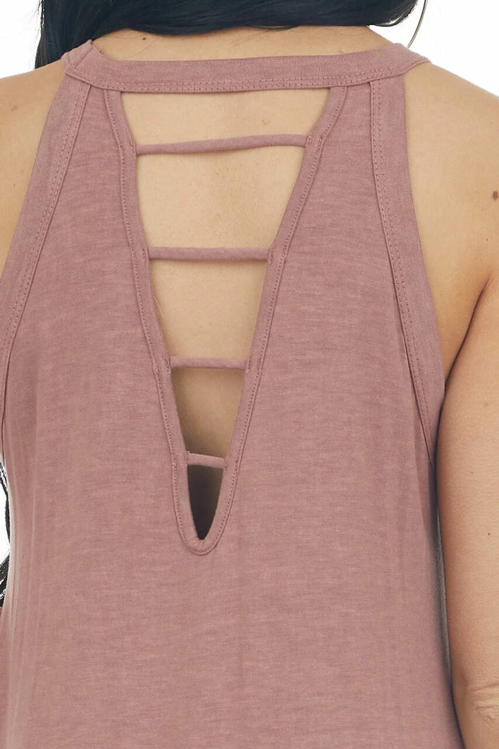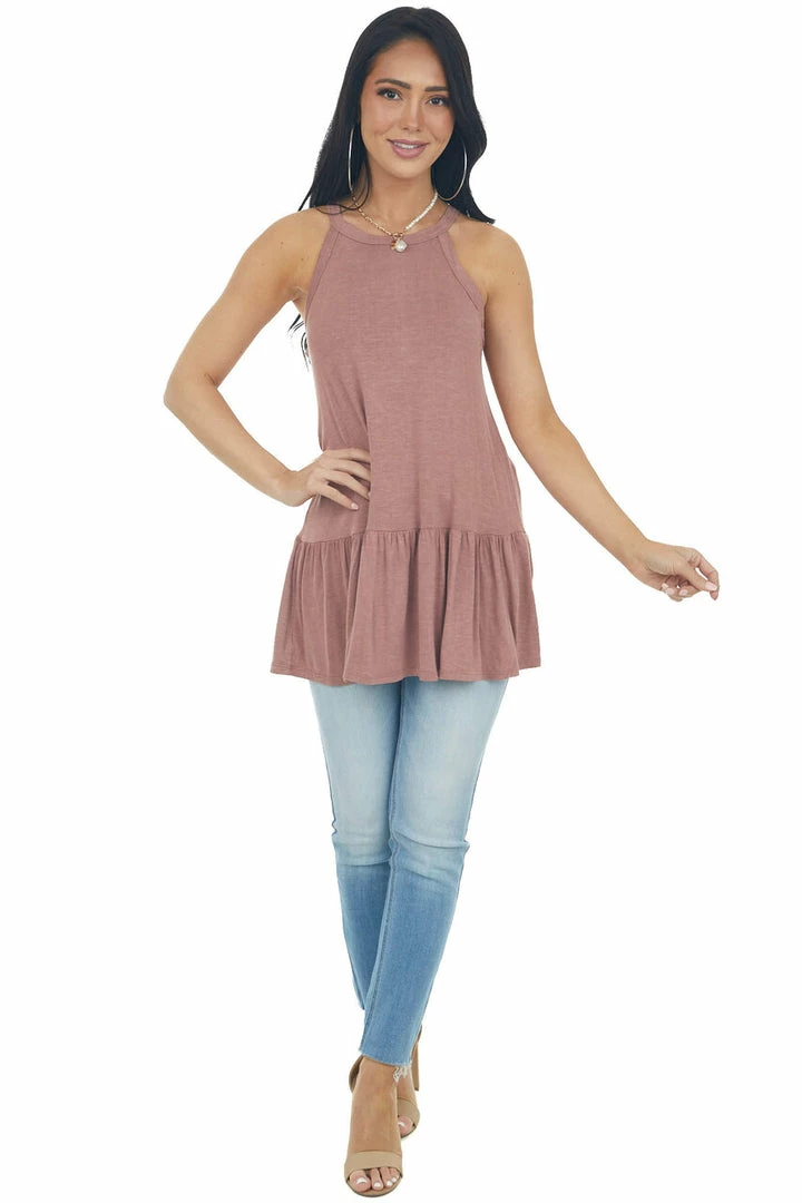 - Marsala Halter Neck Drop Waist Top with Ladder Back