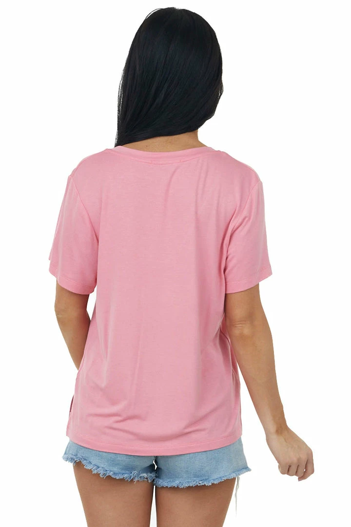 - Punch V Neck Short Sleeve Side Slit Knit Tee