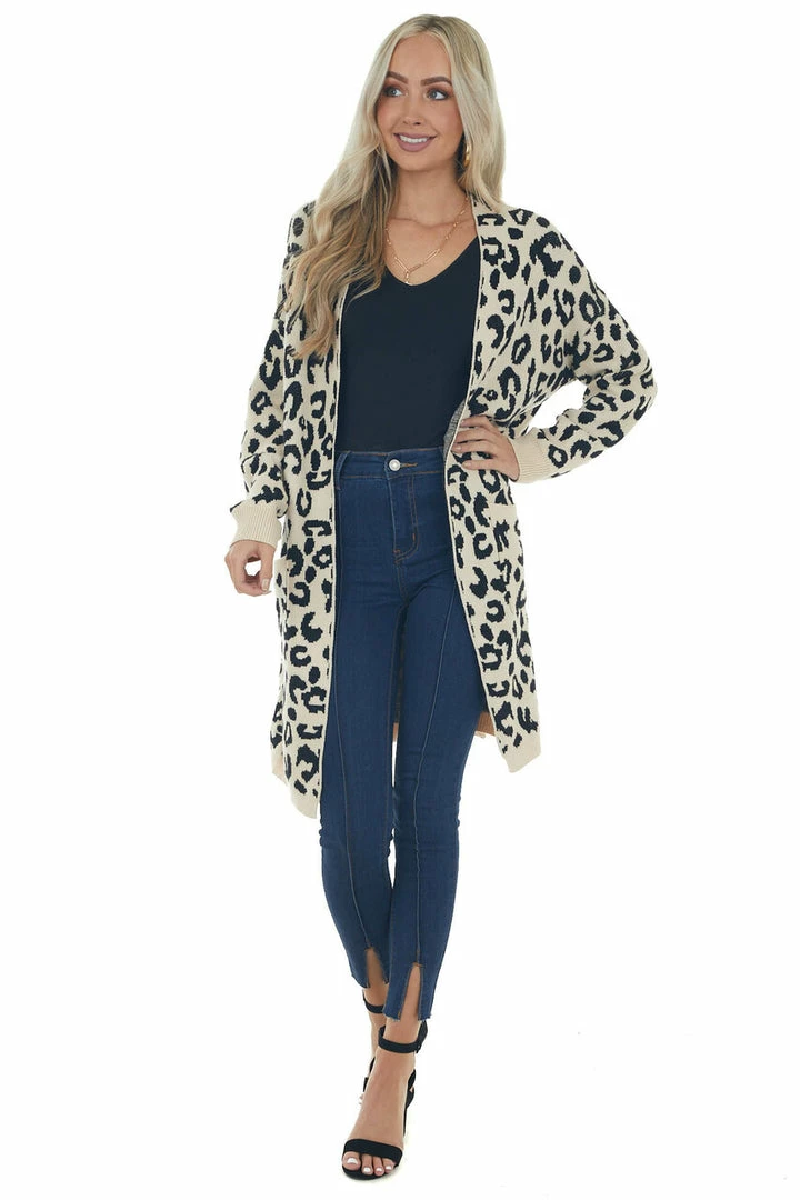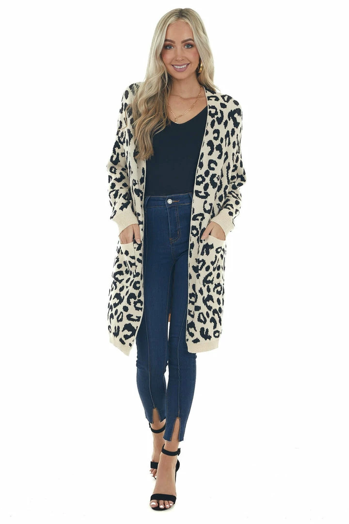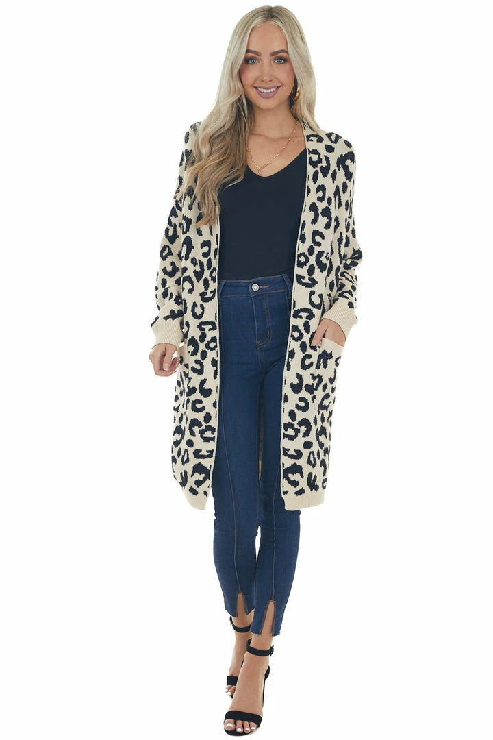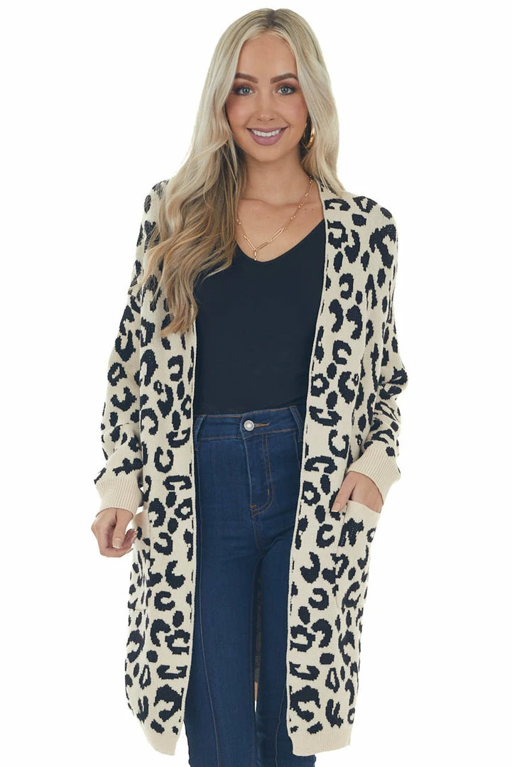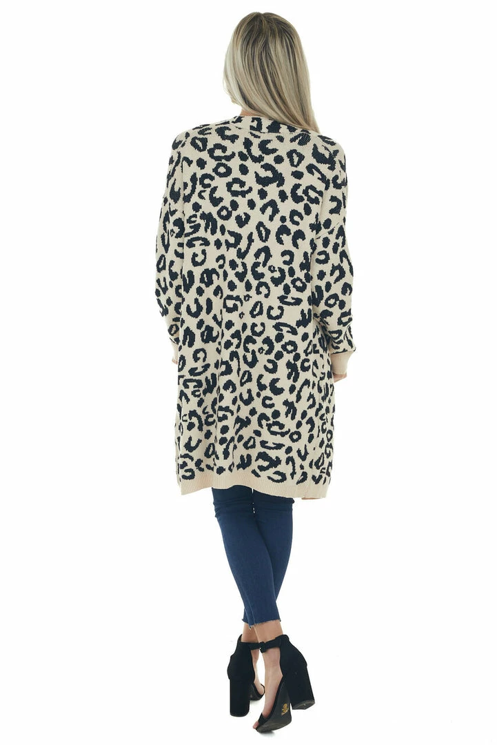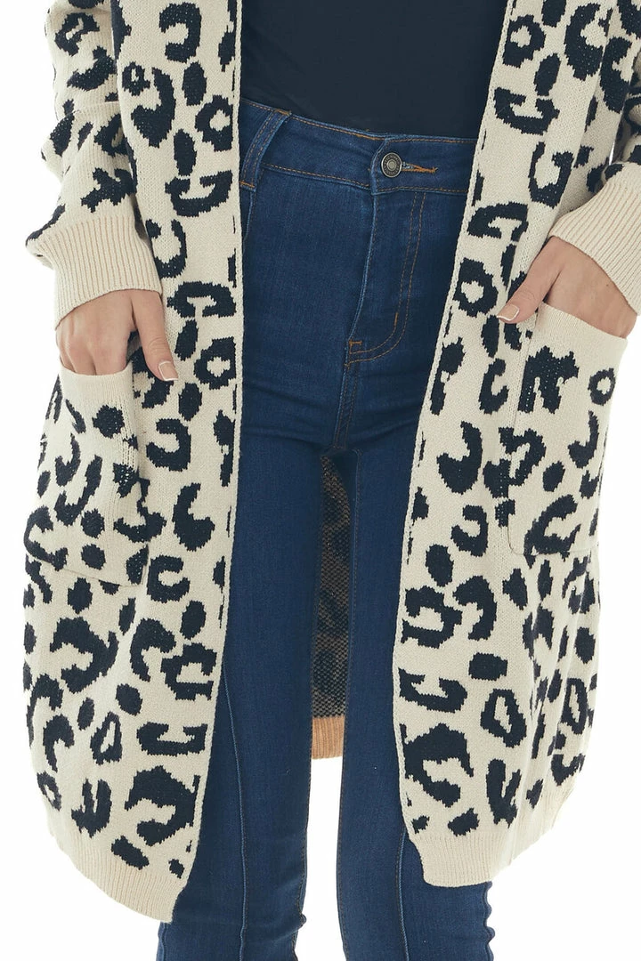 - Rich Cream Leopard Print Long Sleeve Cardigan