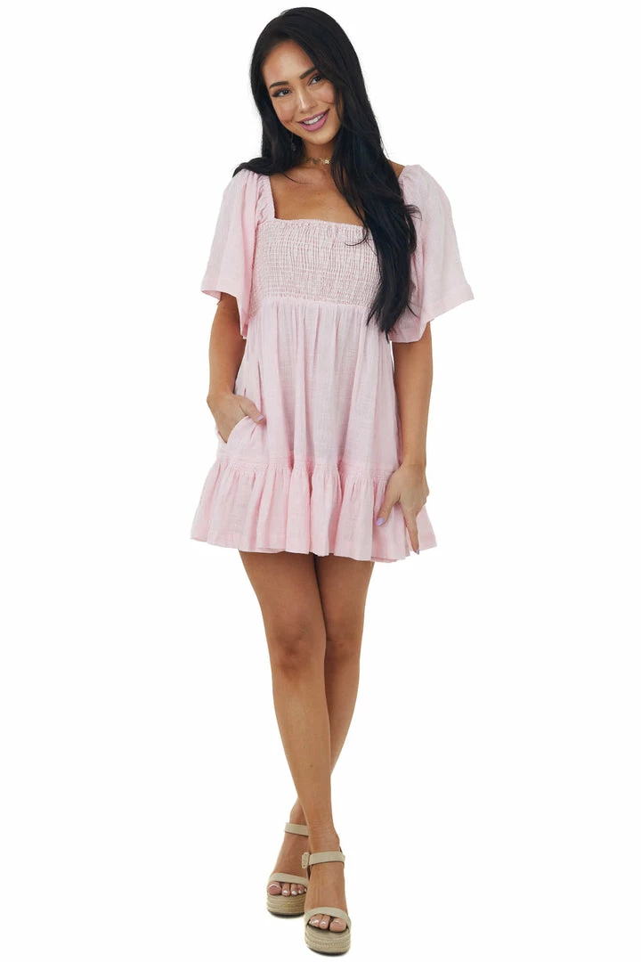 - Cherry Blossom Smocked Back Tie Woven Mini Dress