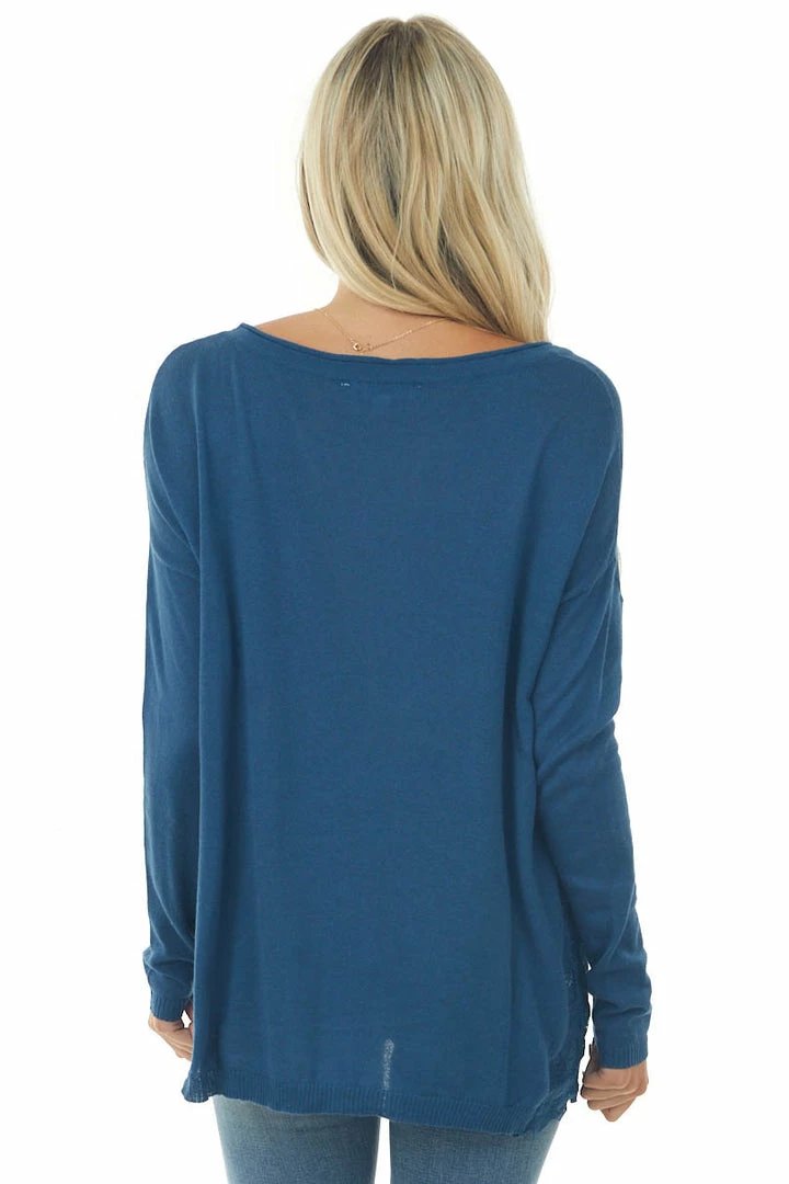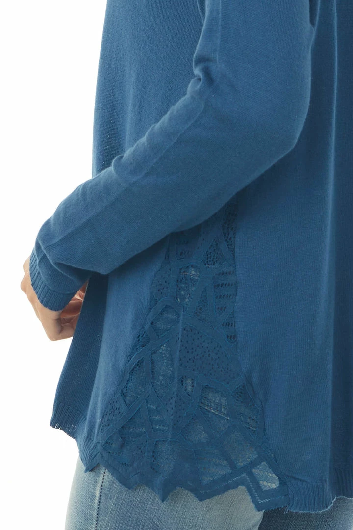 - Dark Blue Long Sleeve Top with Side Lace Panels
