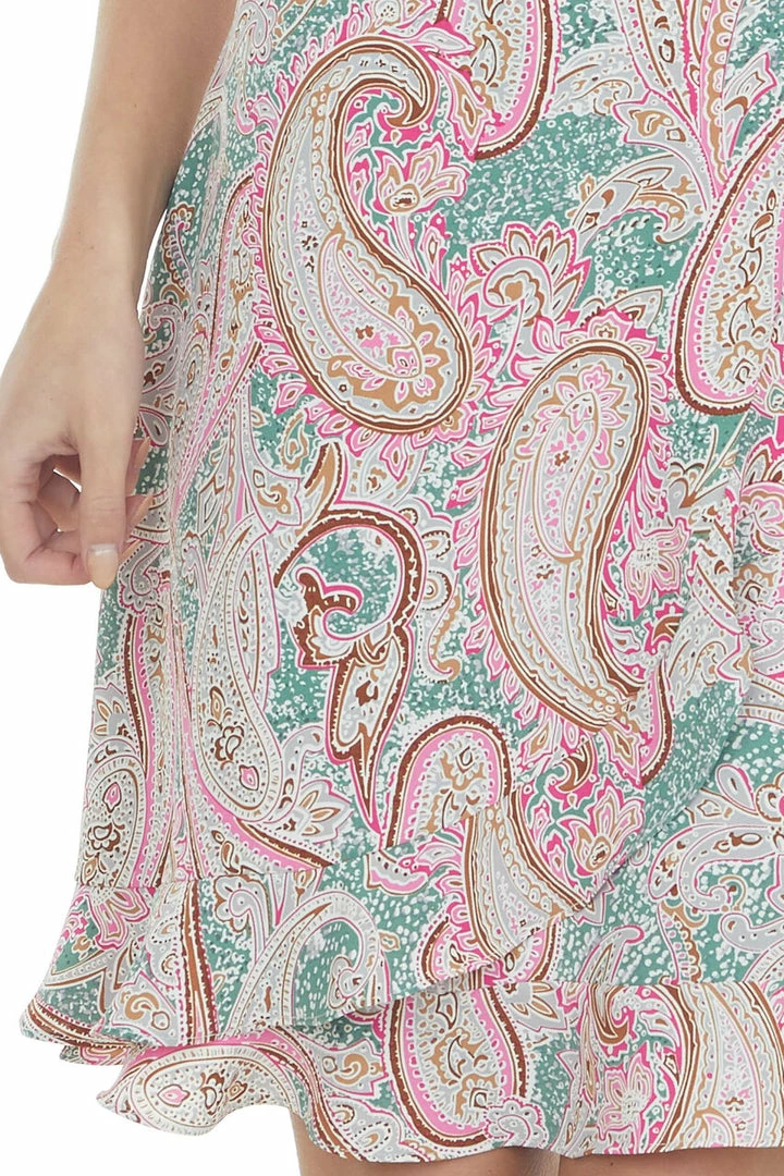 - Jade Paisley Print Faux Wrap Short Dress