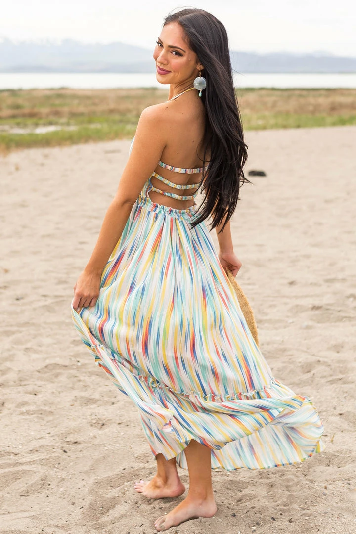 - Multicolor Striped Sleeveless Maxi Dress