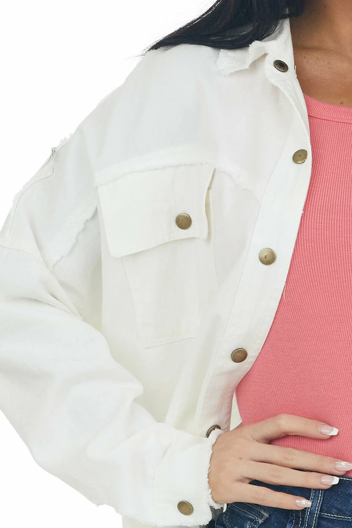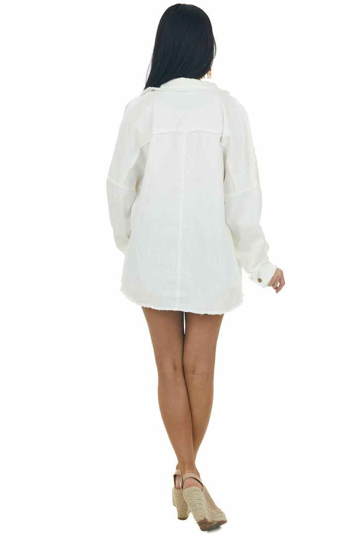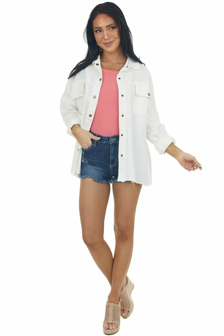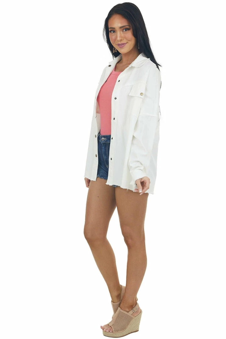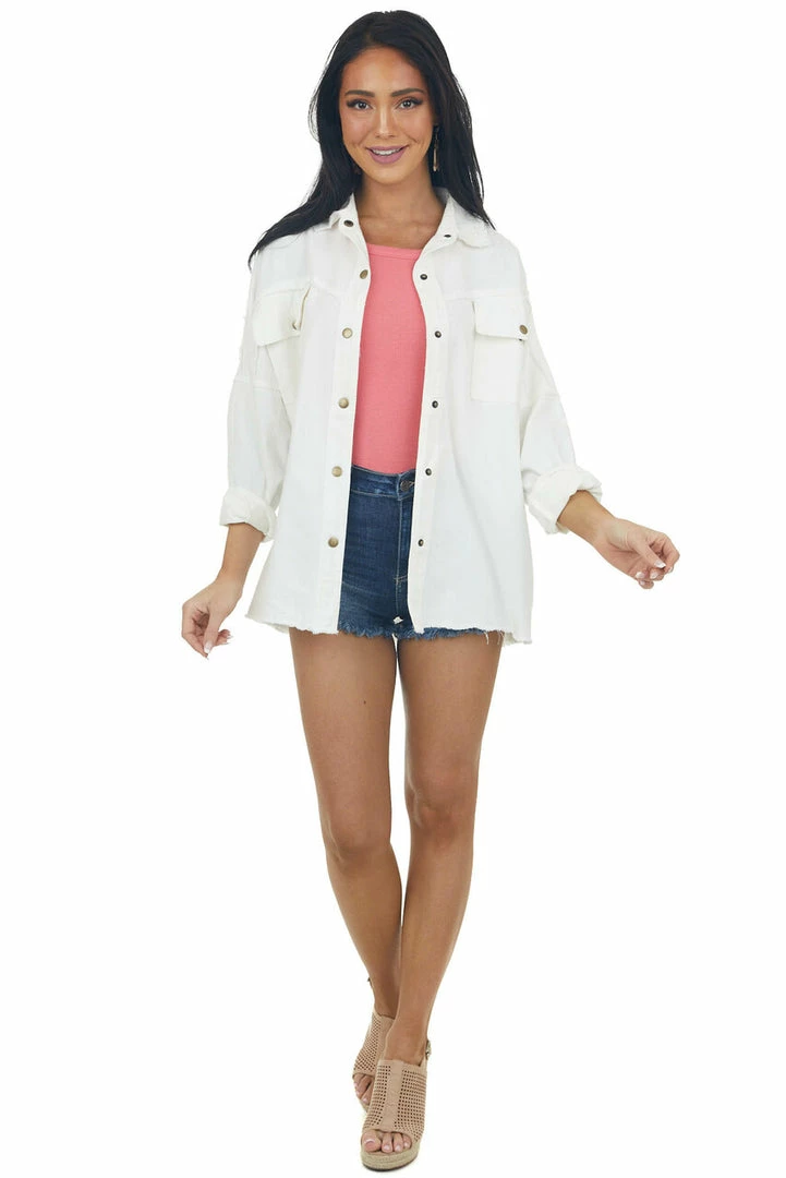 - Off White Fraying Button Down Shacket