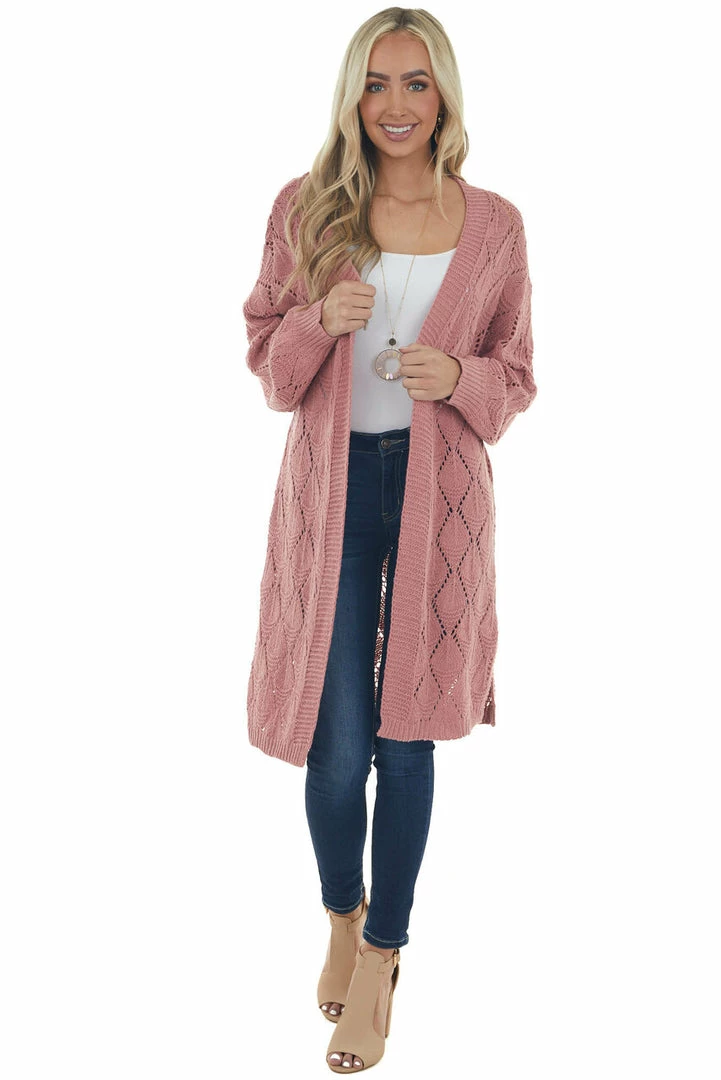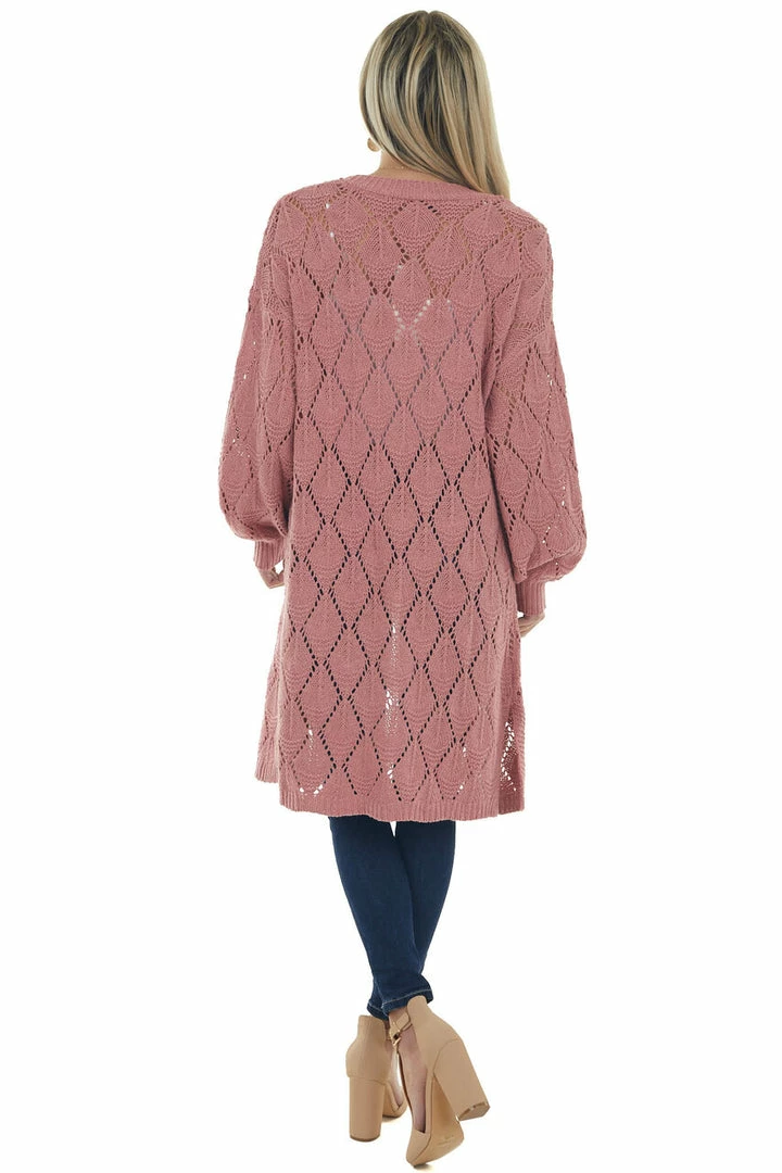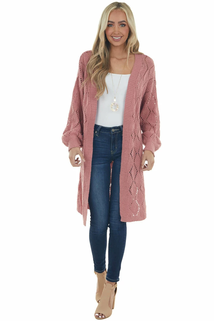 - Punch Pointelle Knit Bubble Sleeve Cardigan
