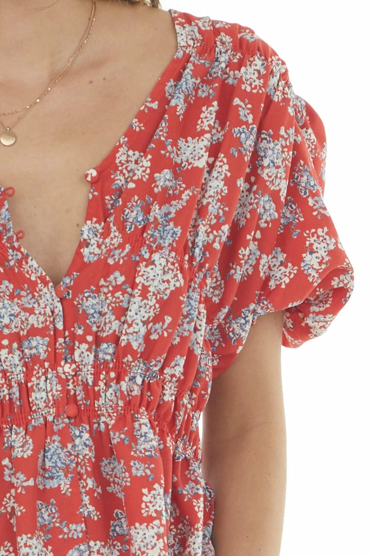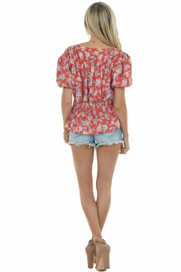 - Ruby Floral Print V Neck Puff Sleeve Blouse