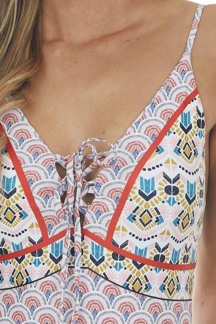- Rust and Mustard Printed Lace Up Neck Swimsuit