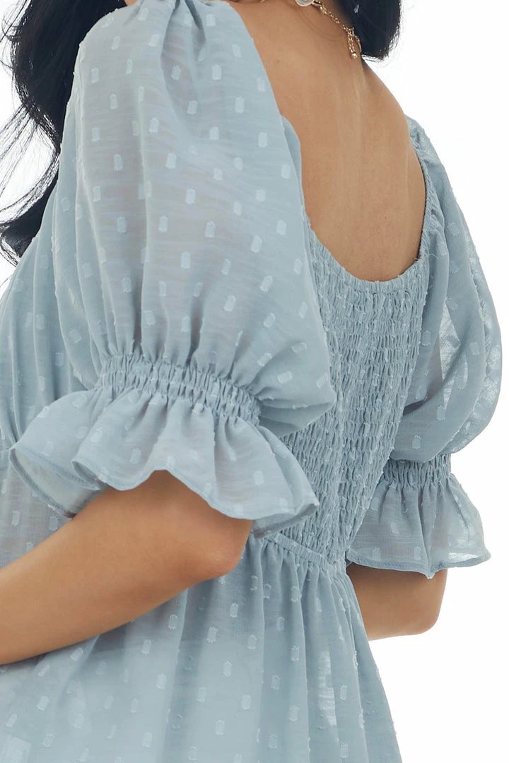 - Slate Blue Swiss Dot Puff Sleeve Babydoll Top