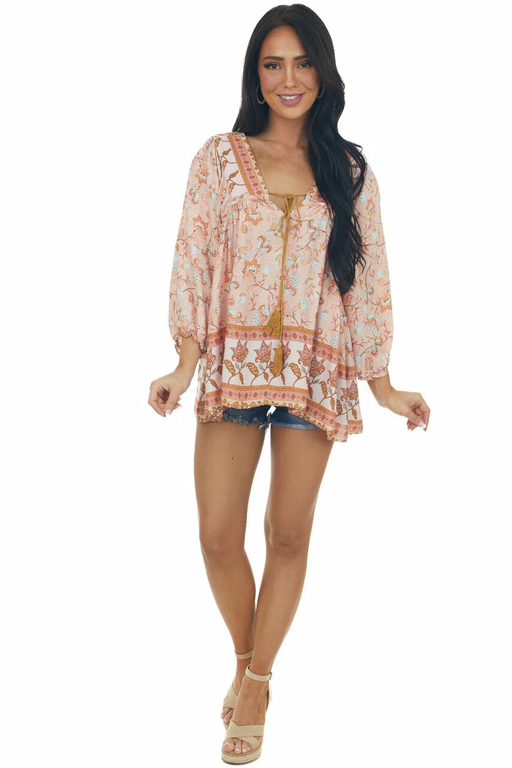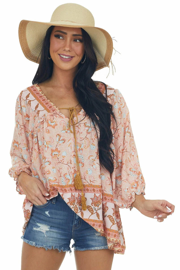 - Floral print in shades of Coral, Marigold, Baby Blue, Ivory, Blush, Tea Rose, Buttercream, Mustard, and Burgundy