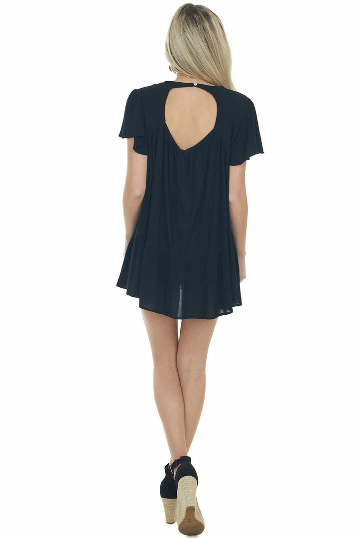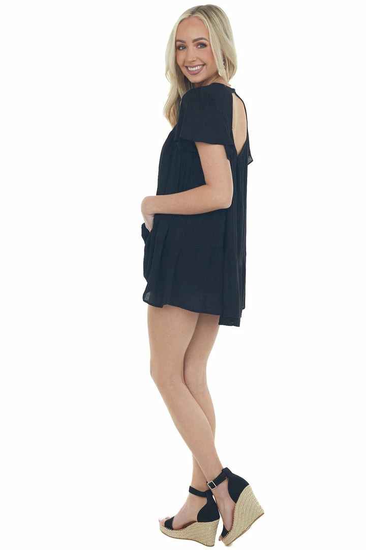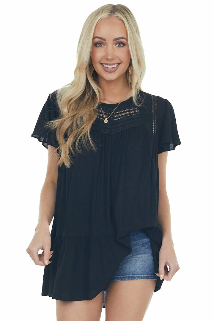 - Black Crochet Lace Yoke Back Cut Out Flowy Top