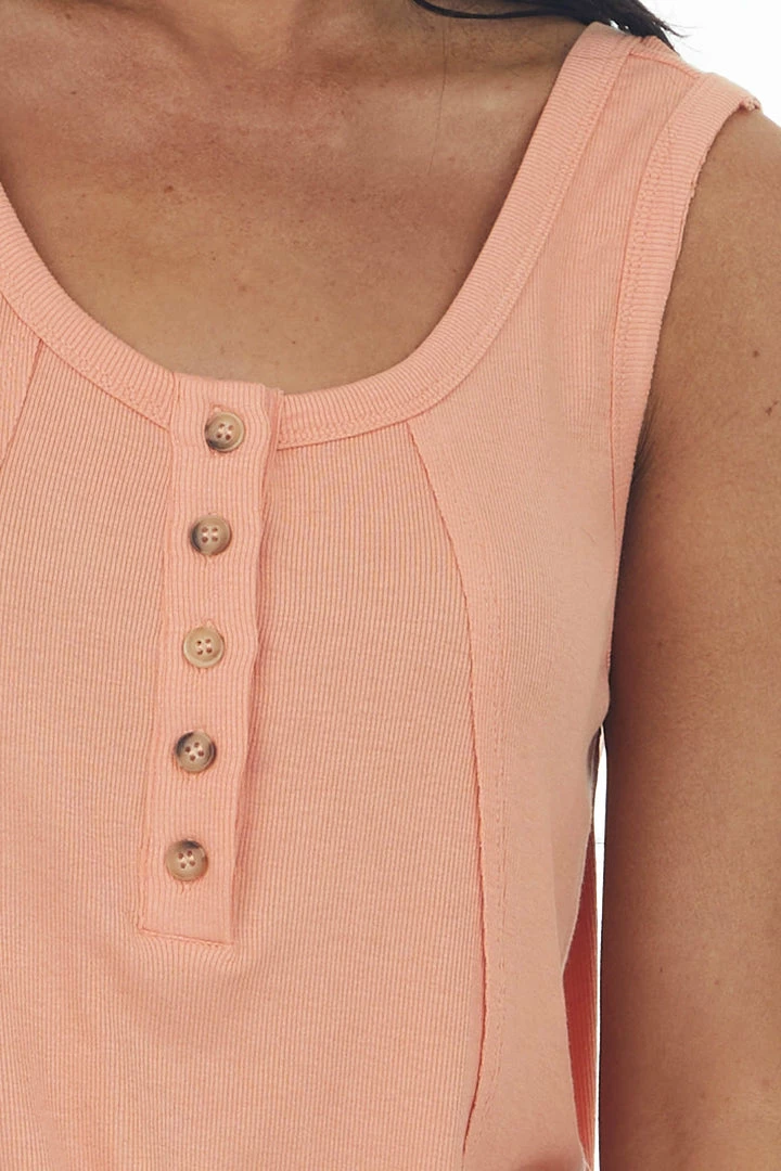 - Bright Melon Henley Flowy Ribbed Knit Tank Top