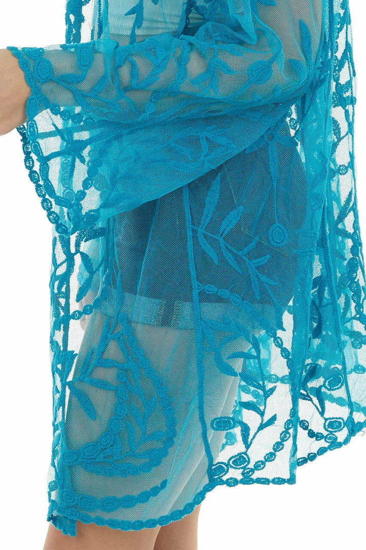 - Rich Azure Crochet Lace Open Front Kimono