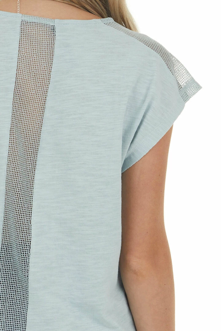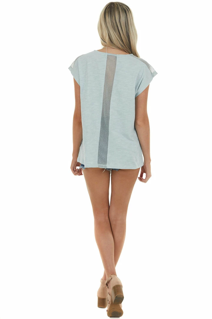 - Heathered Mint Short Sleeve Knit Top with Netting Details