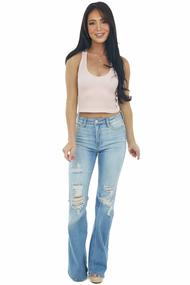 - Dusty Blush Ribbed Knit Racerback Crop Tank