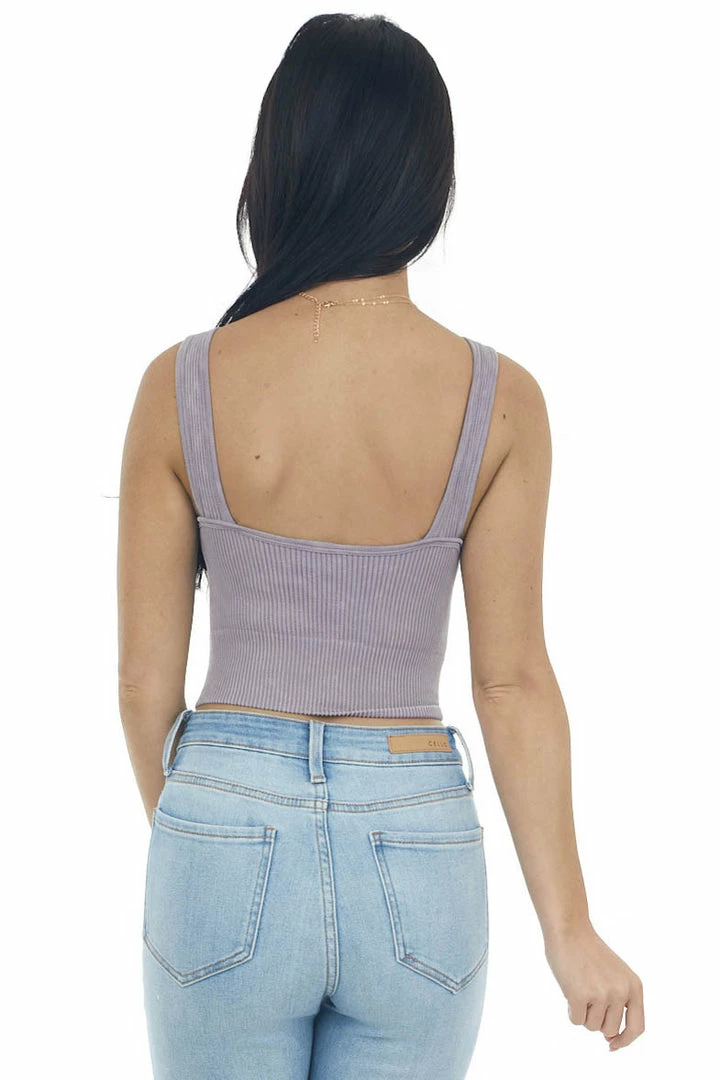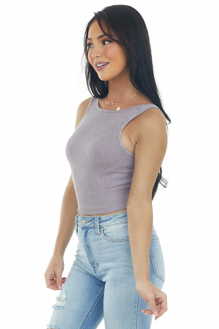 - Dusty Lilac Washed Ribbed Halter Crop Tank