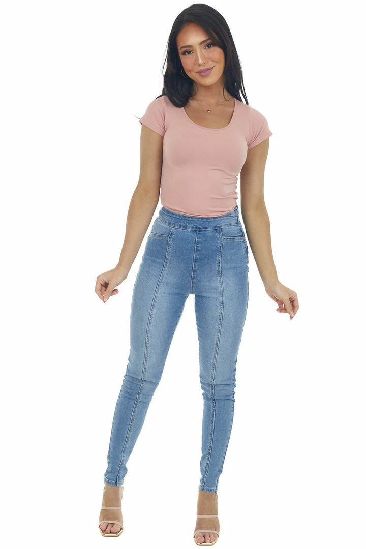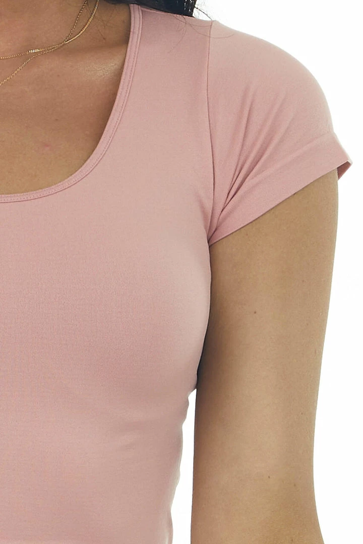 - Dusty Blush Scoop Neckline Short Sleeve Top