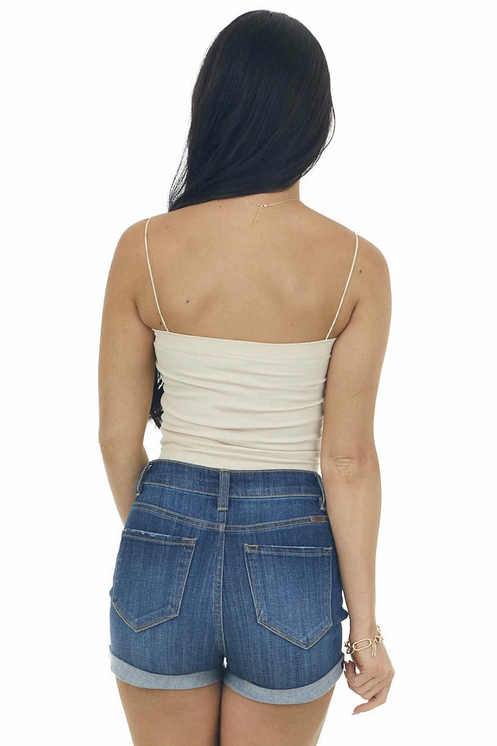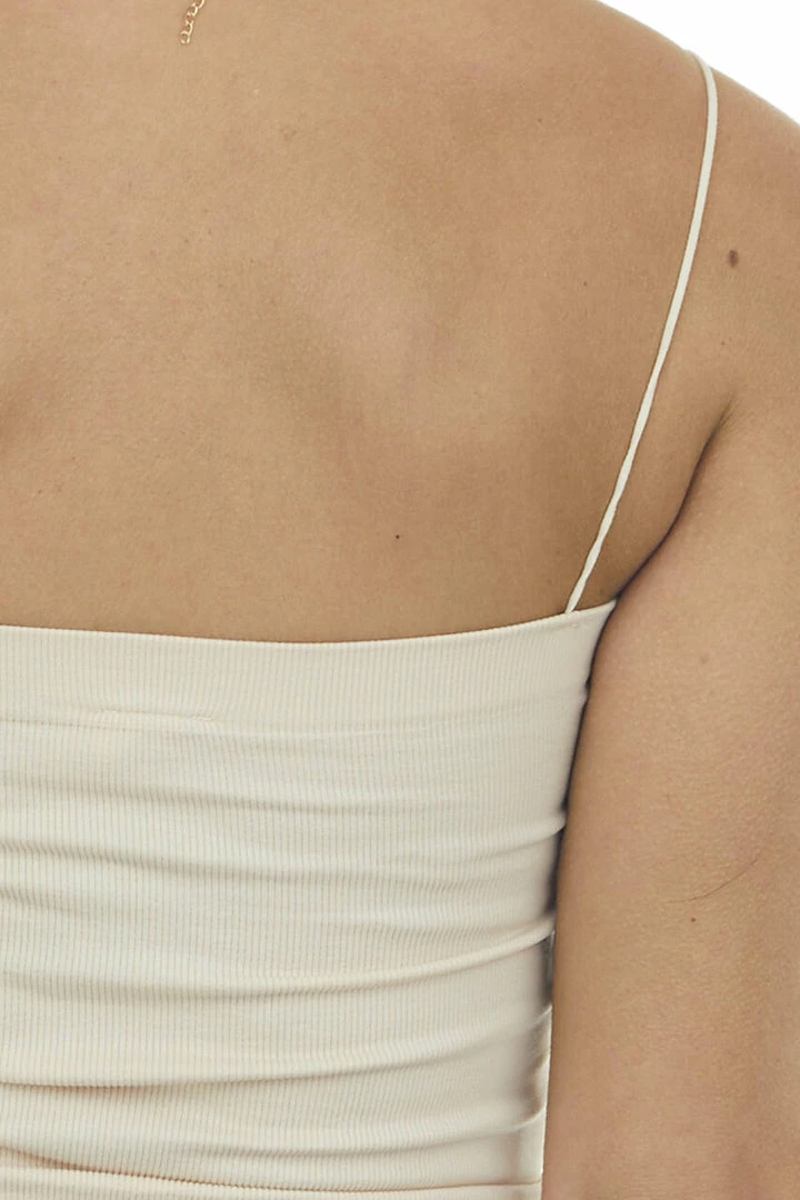 - Nude Ribbed Knit Crop Top with Spaghetti Strap
