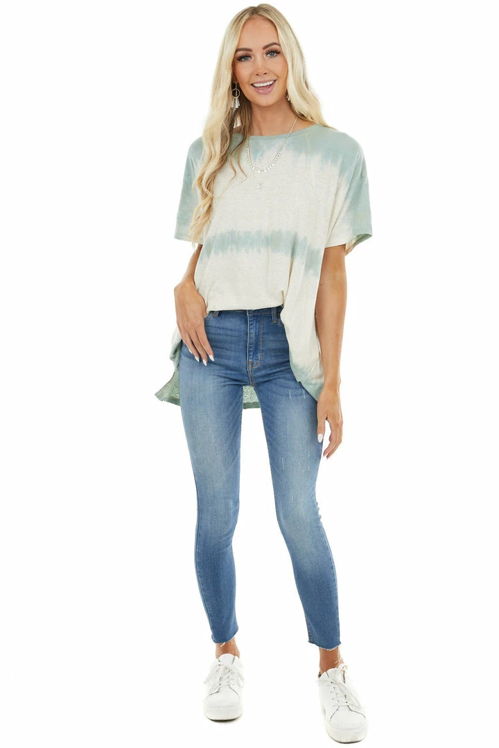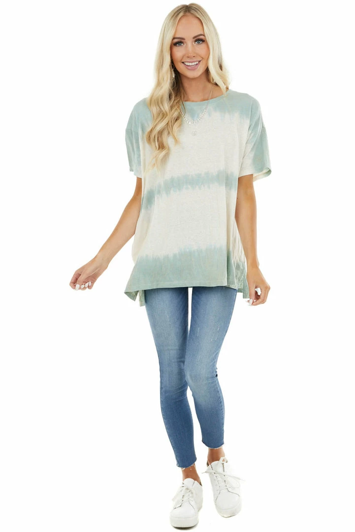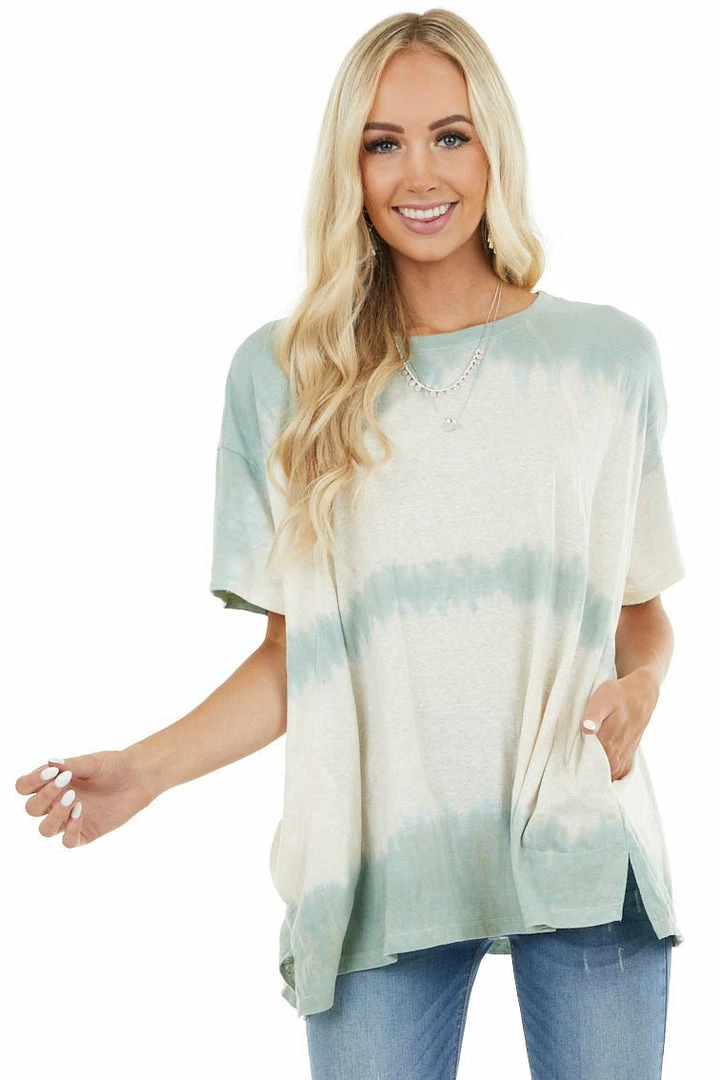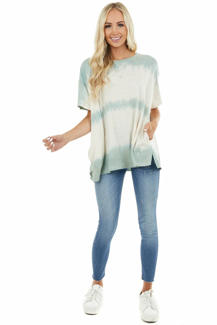 - Cream and Sage Washed Oversized Top with Side Pockets