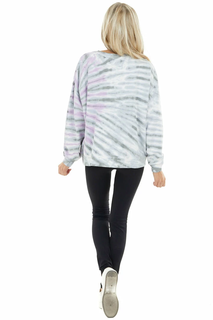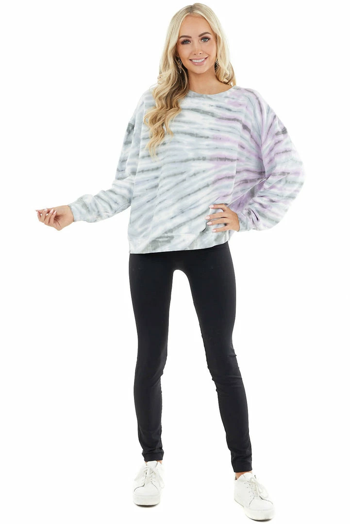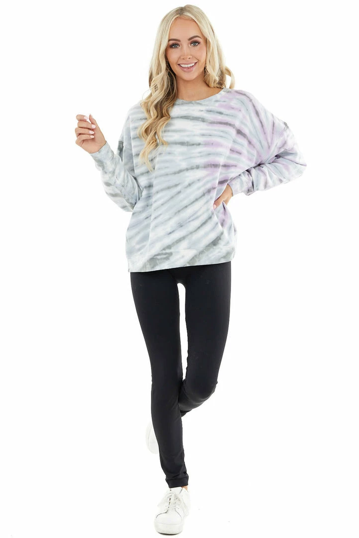 - Dusty Blue and Iris Purple Tie Dye Loose Fit Pullover