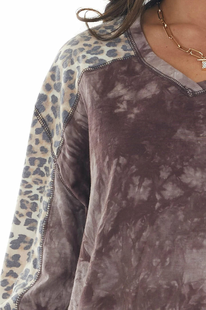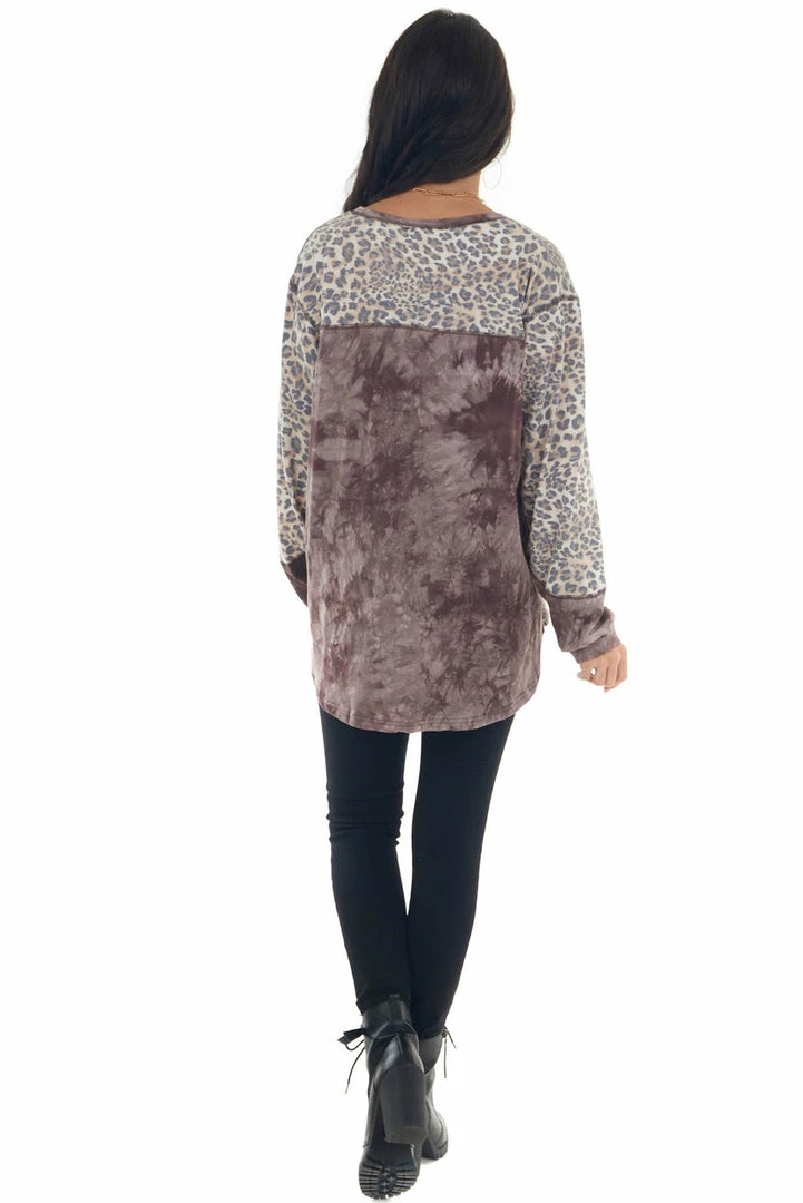 - Mauve Tie Dye and Animal Print Long Sleeve Top