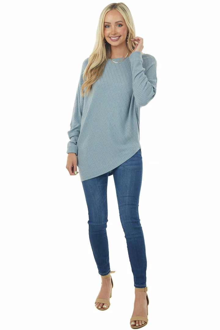 - Powder Blue Off The Shoulder Long Sleeve Asymmetrical Top