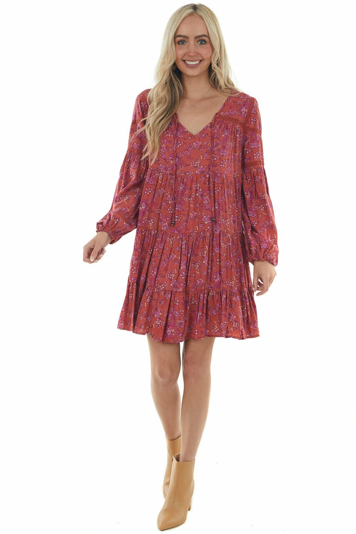 - Floral print in shades of Mulberry, Orchid, Ivory and Buttercream