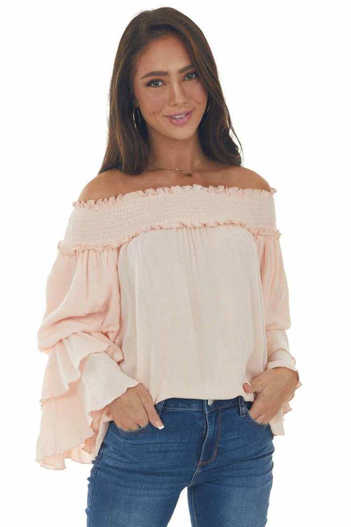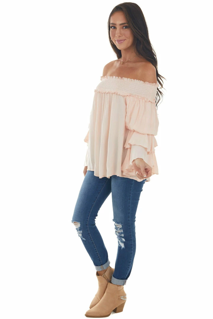 - Tea Rose Off Shoulder Tiered Ruffle Sleeve Top