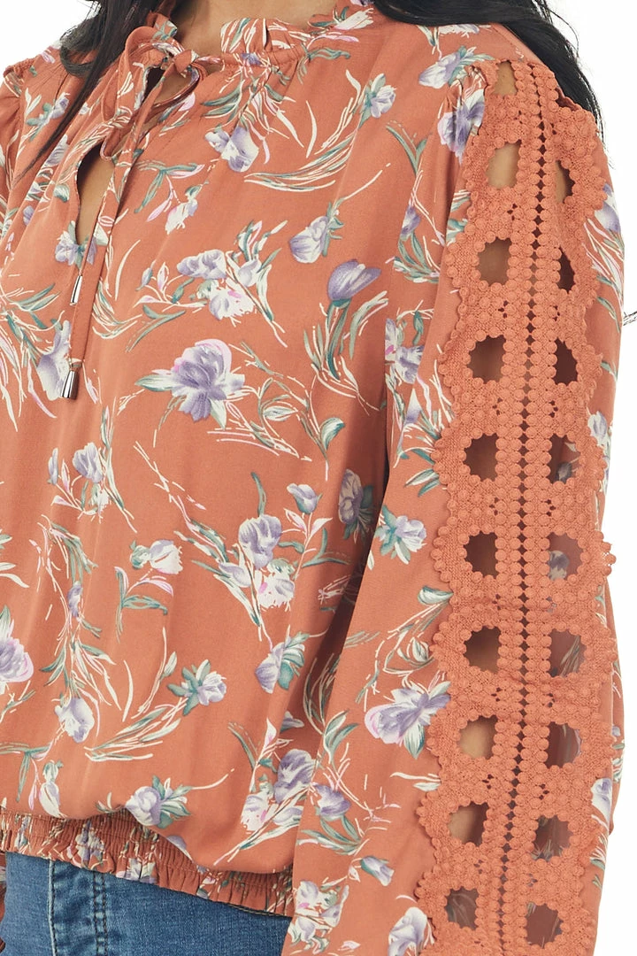 - Ginger Floral Cut Out Lace Sleeve Tie Blouse