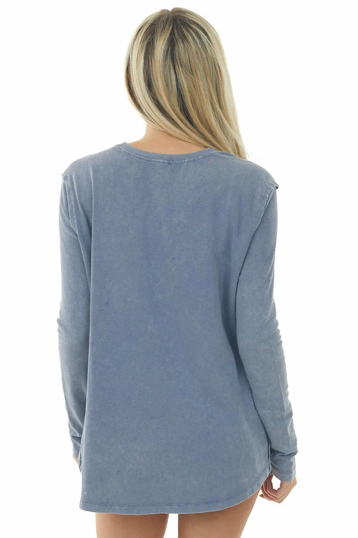 - Vintage Slate Blue Long Sleeve Crew Neck Top