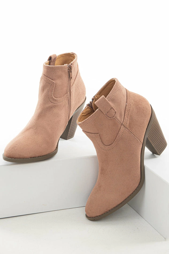 - Apricot Faux Suede Rounded Toe Heeled Bootie