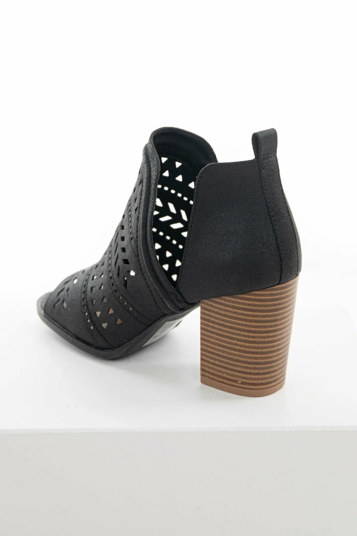 - Black Open Toe Chunky Stacked Heel Bootie