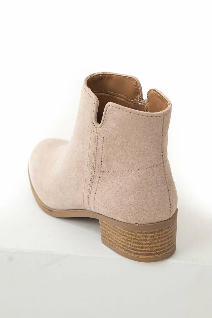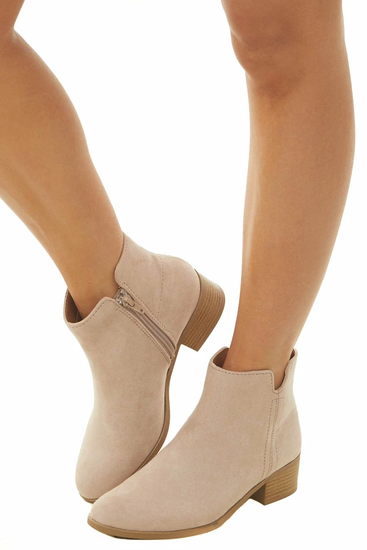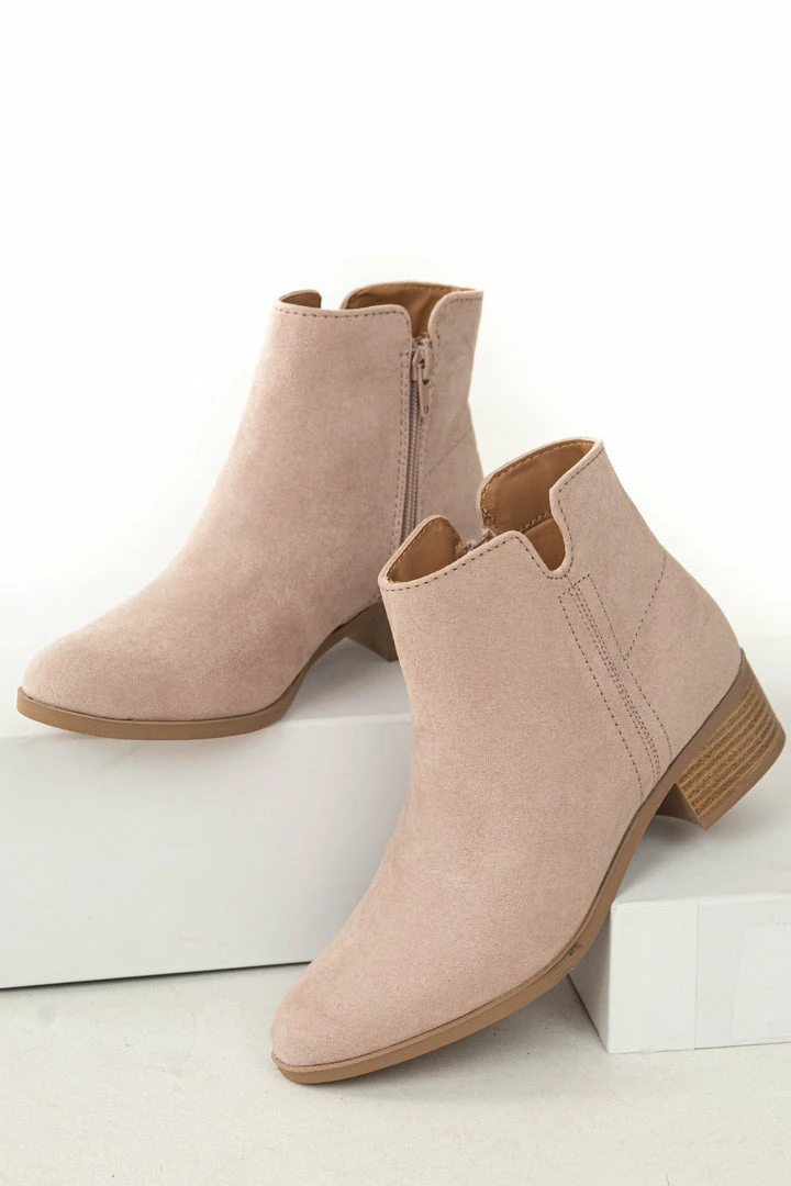 - Faded Desert Sand Faux Suede Stacked Heel Booties