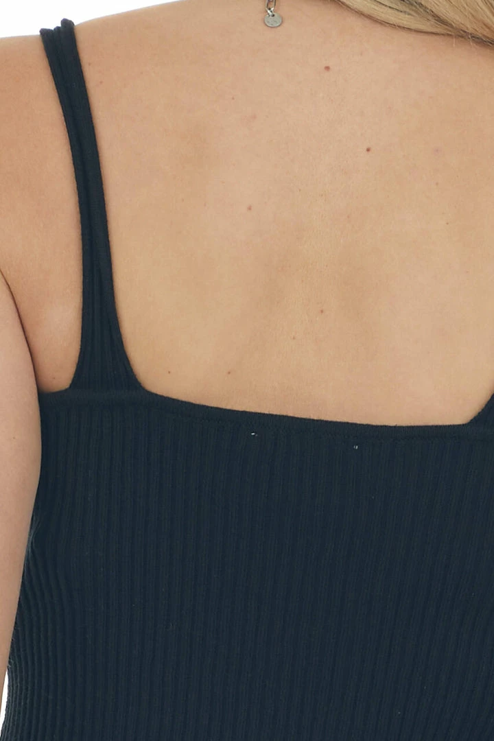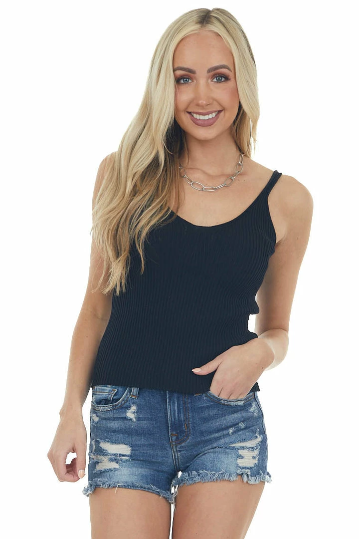- Black Stretchy Ribbed Knit V Neck Tank Top