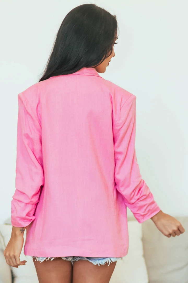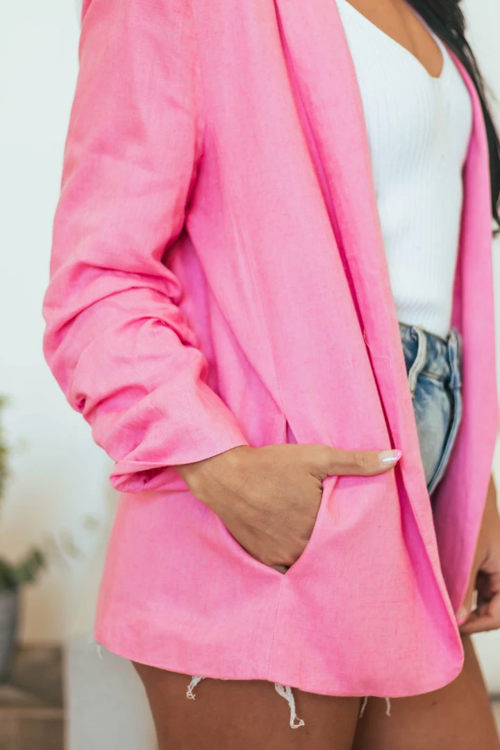 - Bubblegum Linen Blazer with Shoulder Pads